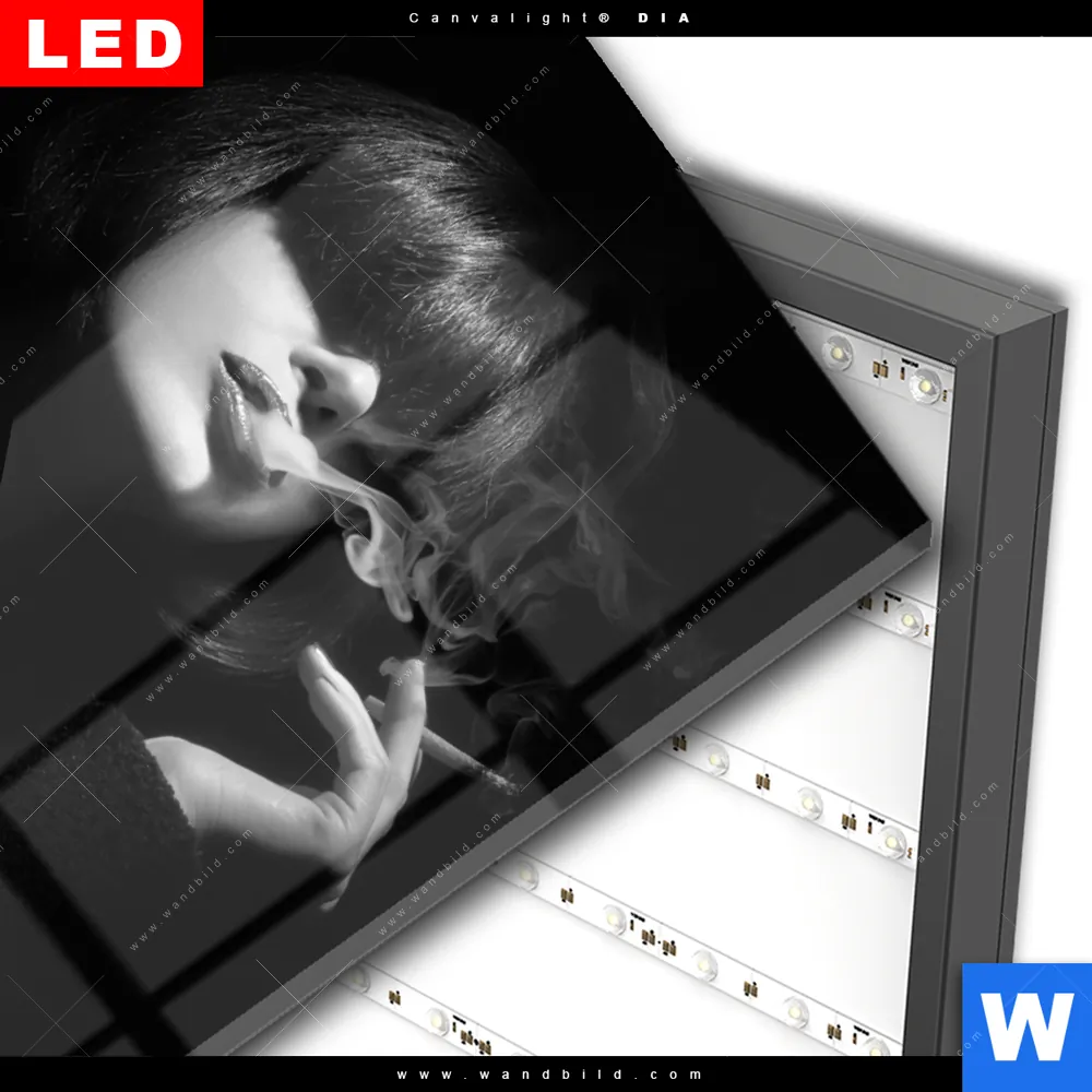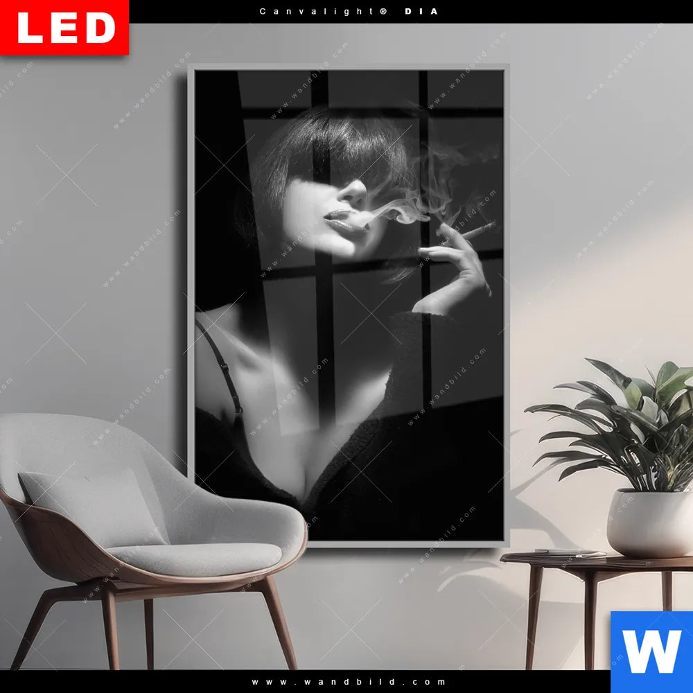 Wechselmotiv Acrylglas Canvalight® DIA | Rauchende Lady | Hochformat