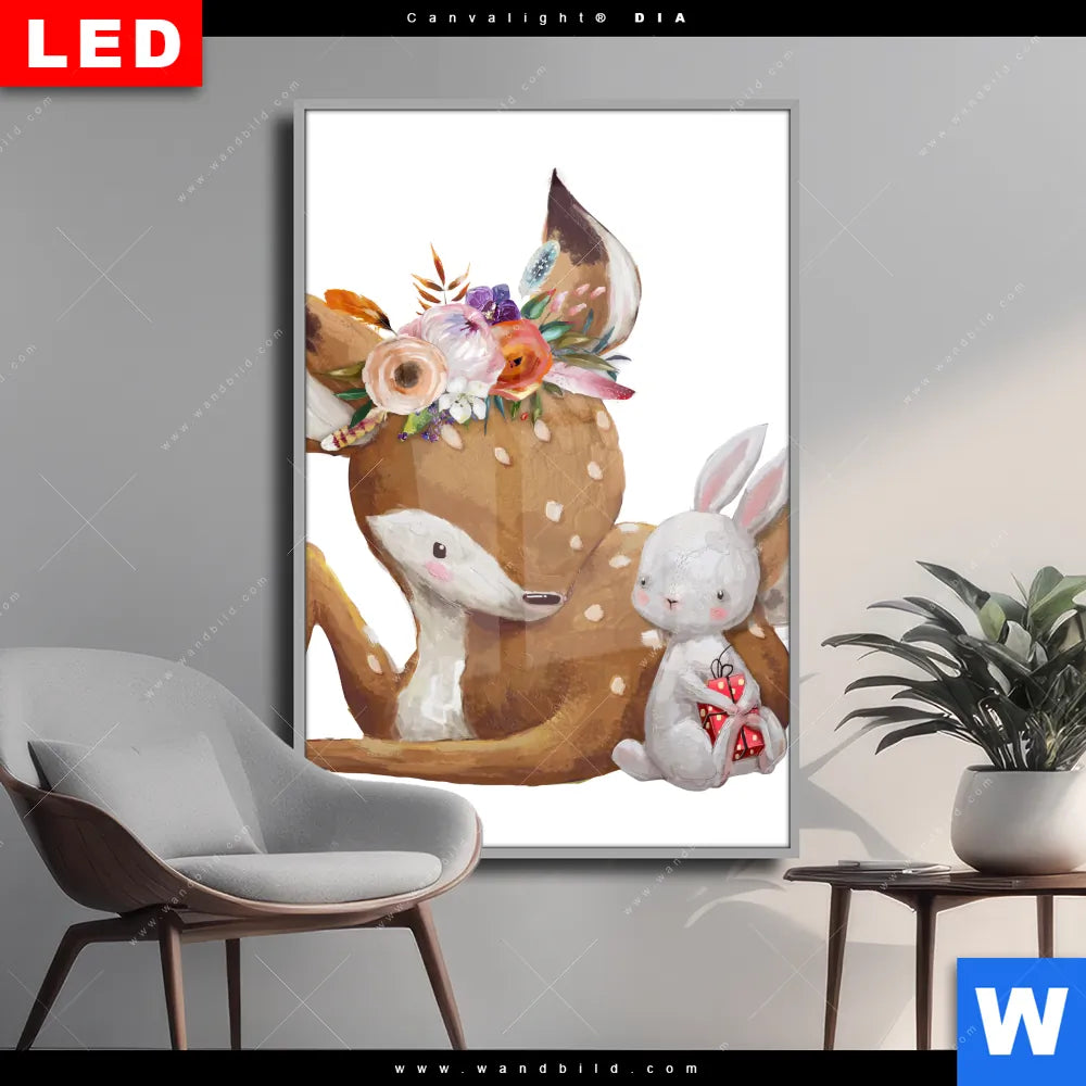 Wechselmotiv Acrylglas Canvalight® DIA | Reh & Häschen | Hochformat