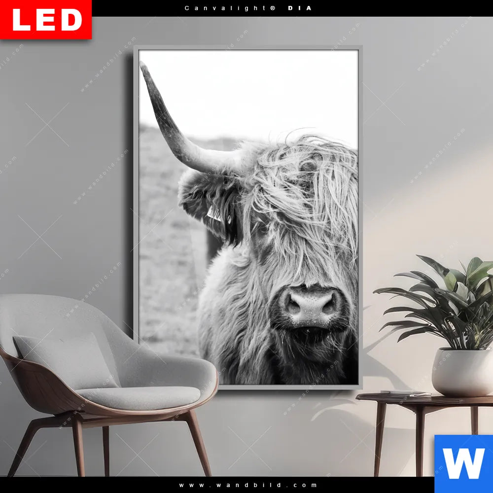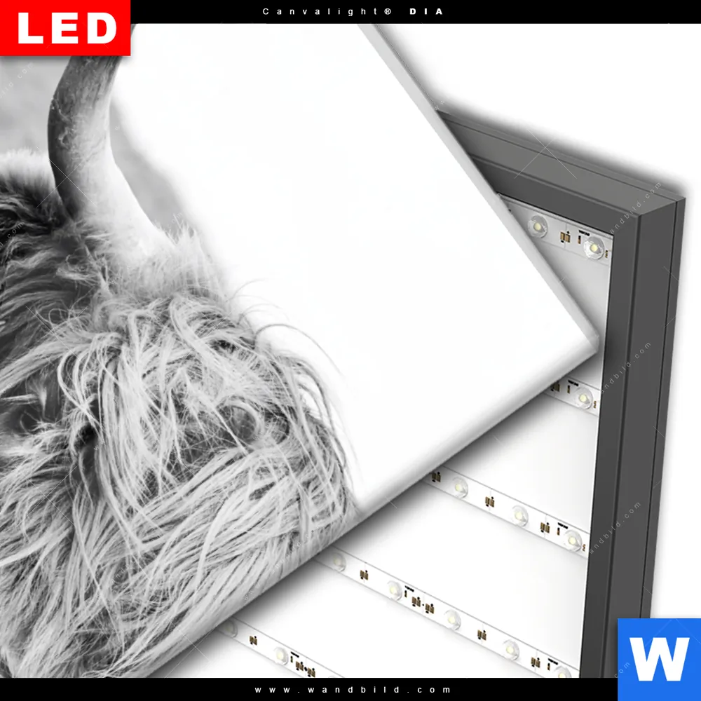 Wechselmotiv Acrylglas Canvalight® DIA | Rind im Hochland | Hochformat