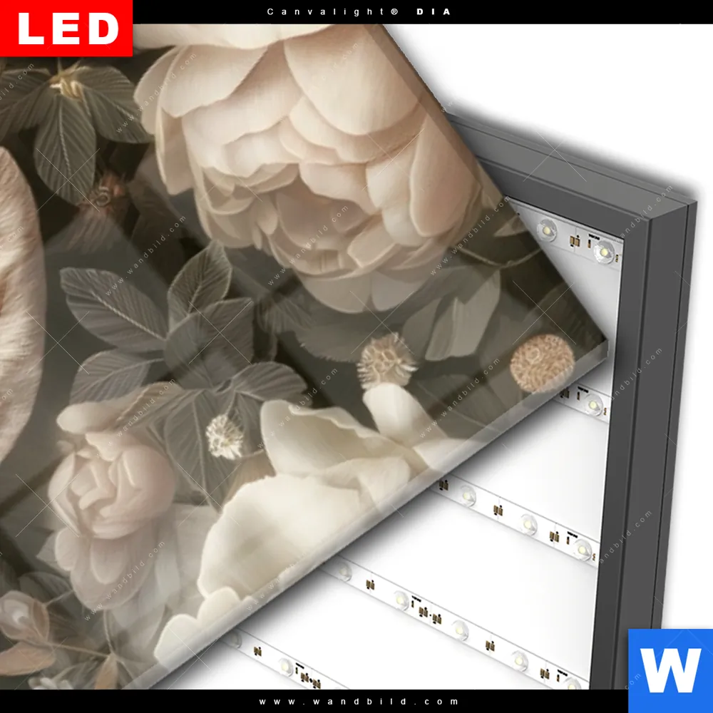 Wechselmotiv Acrylglas Canvalight® DIA | Romantischer Hirsch mit Blumen | Panorama