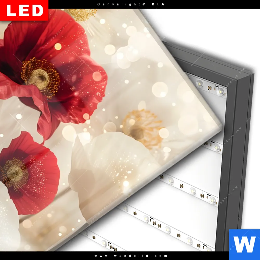Wechselmotiv Acrylglas Canvalight® DIA | Rote und weiße Mohnblumen | Hochformat
