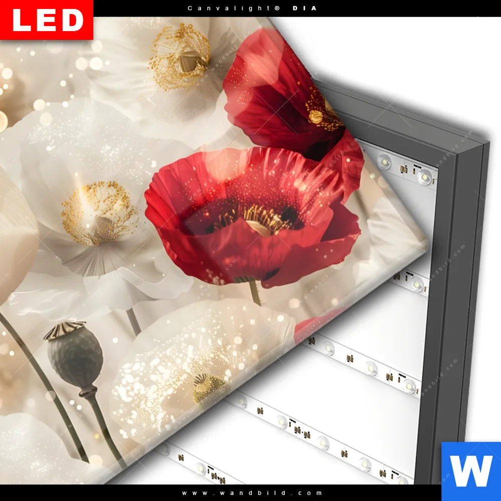 Wechselmotiv Acrylglas Canvalight® DIA | Rote und weiße Mohnblumen | Querformat