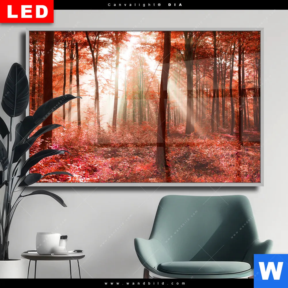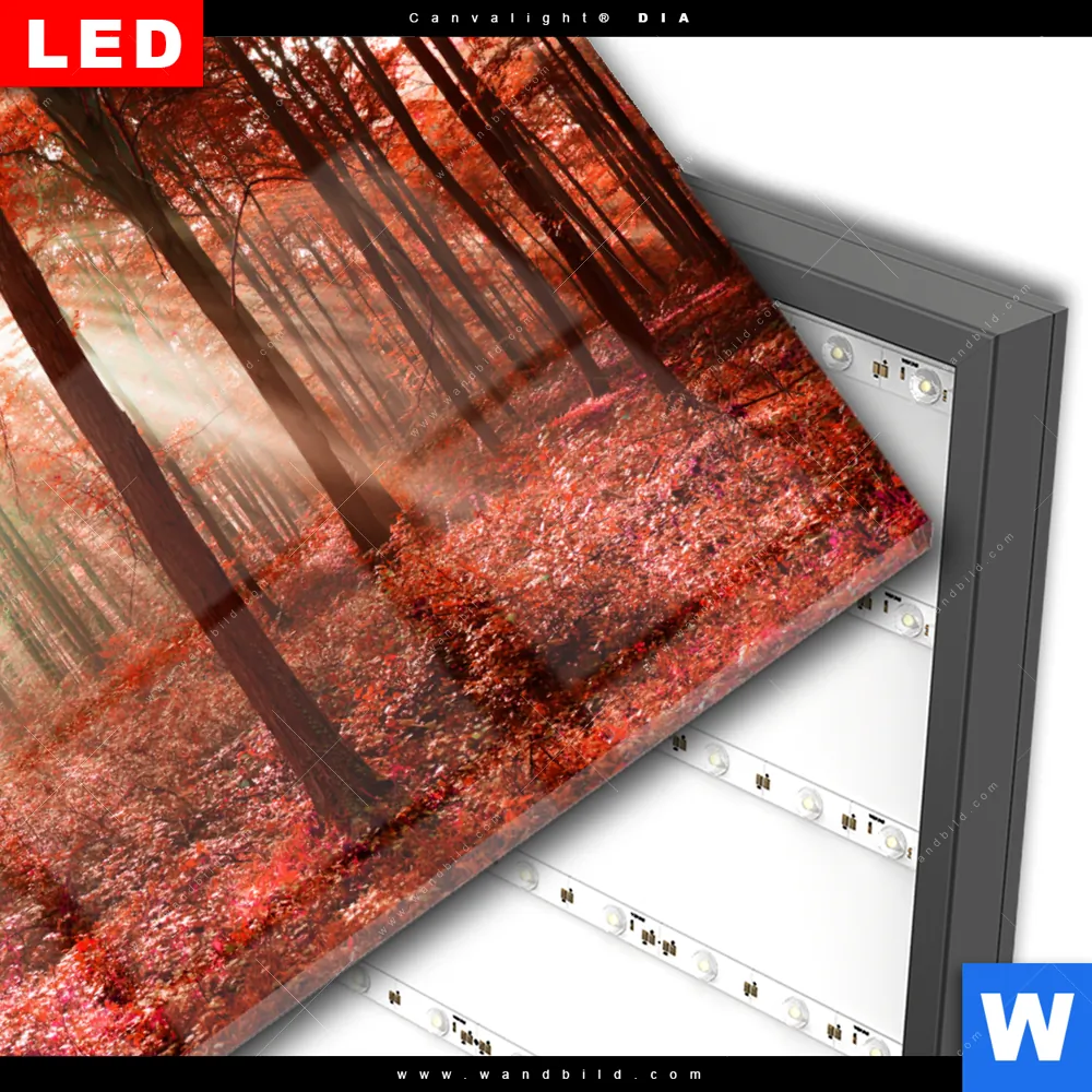 Wechselmotiv Acrylglas Canvalight® DIA | Roter Herbstwald | Querformat