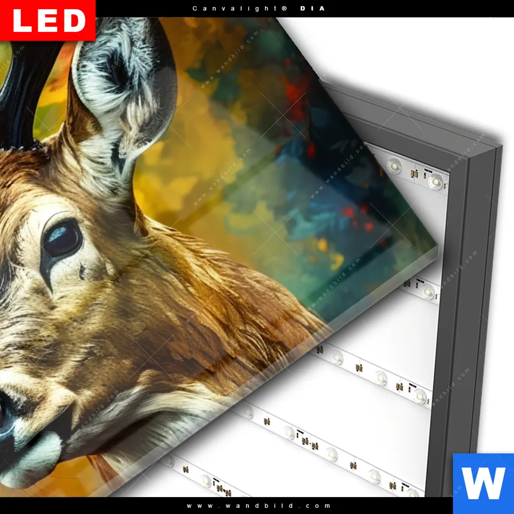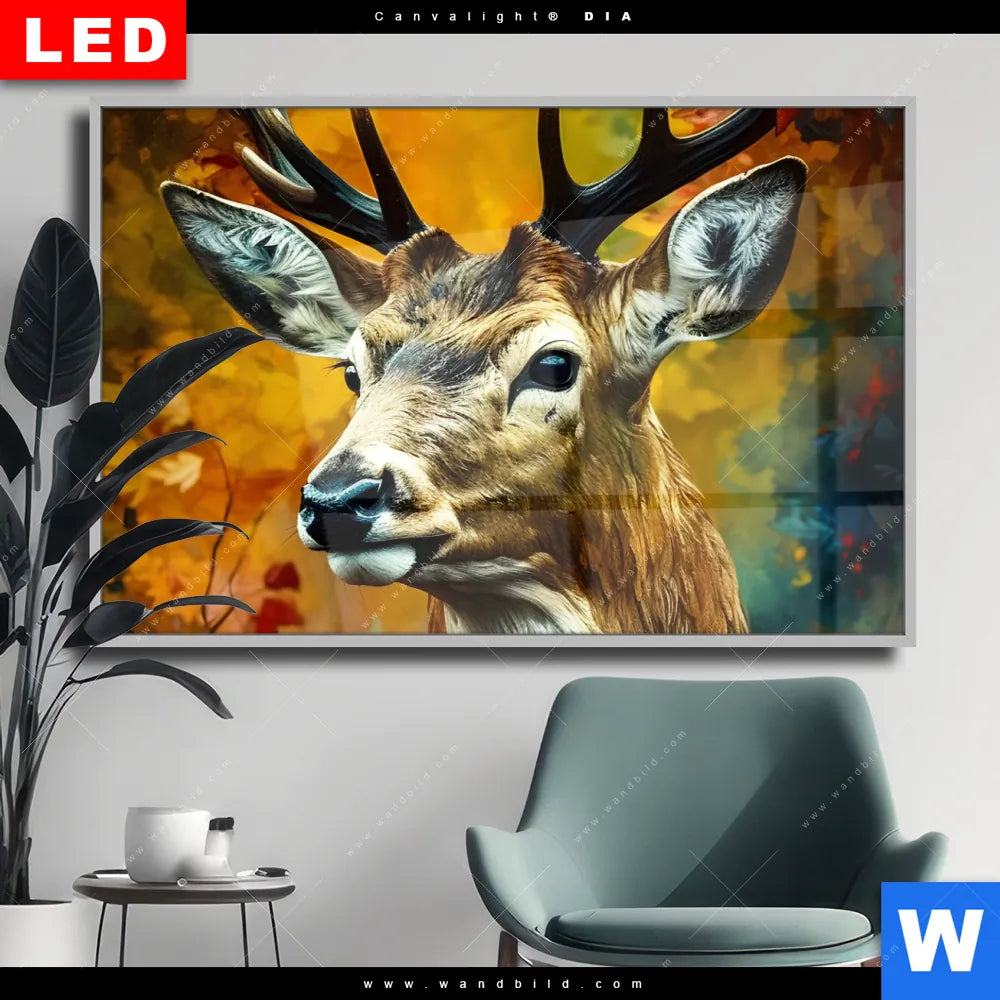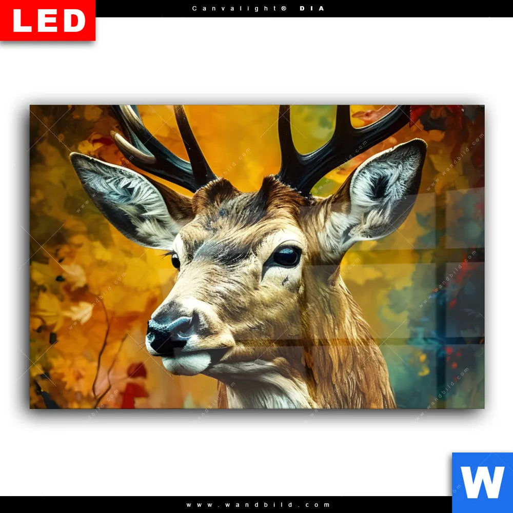 Wechselmotiv Acrylglas Canvalight® DIA | Rothirsch im Herbstwald | Querformat