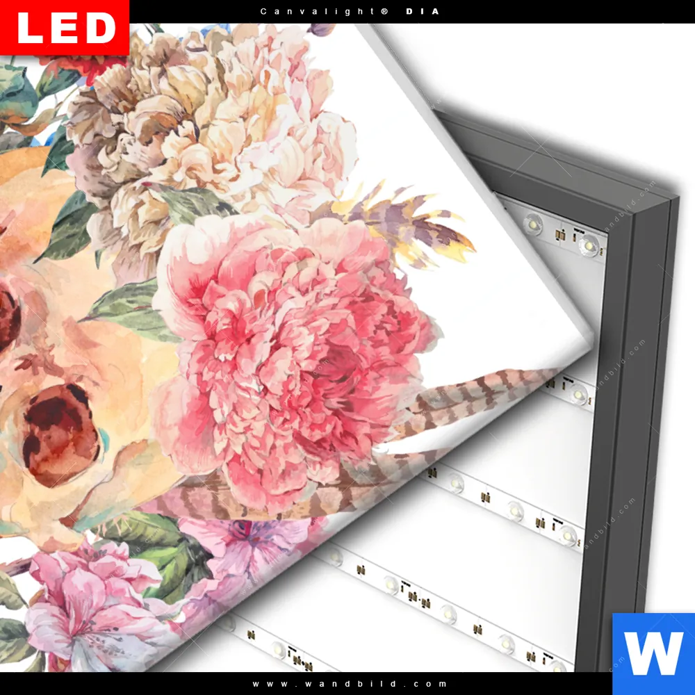 Wechselmotiv Acrylglas Canvalight® DIA | Schädel im Boho Stil | Hochformat