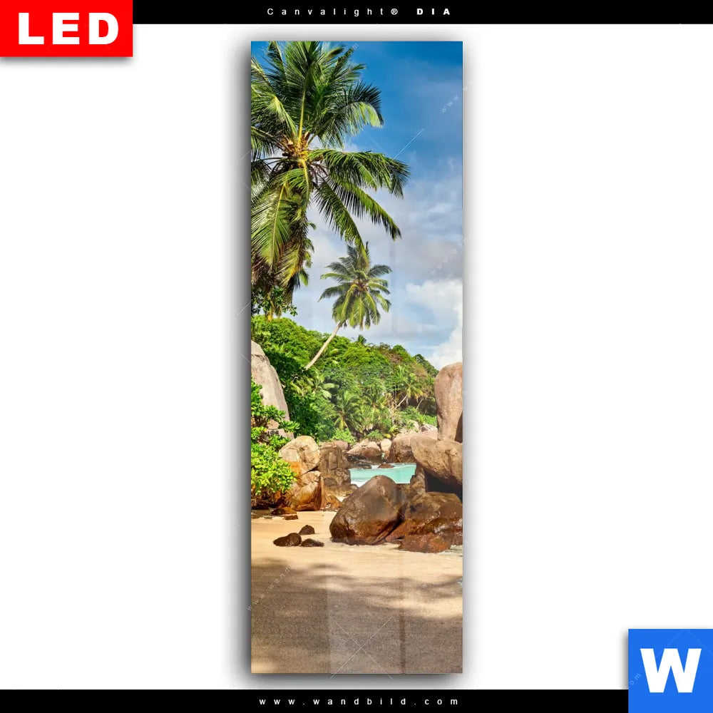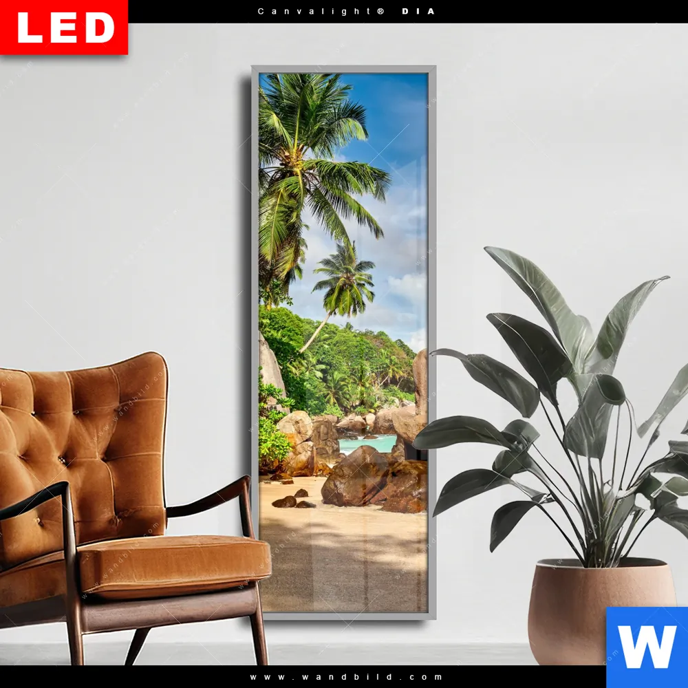 Wechselmotiv Acrylglas Canvalight® DIA | Schöner Strand mit Palmen | Schmal