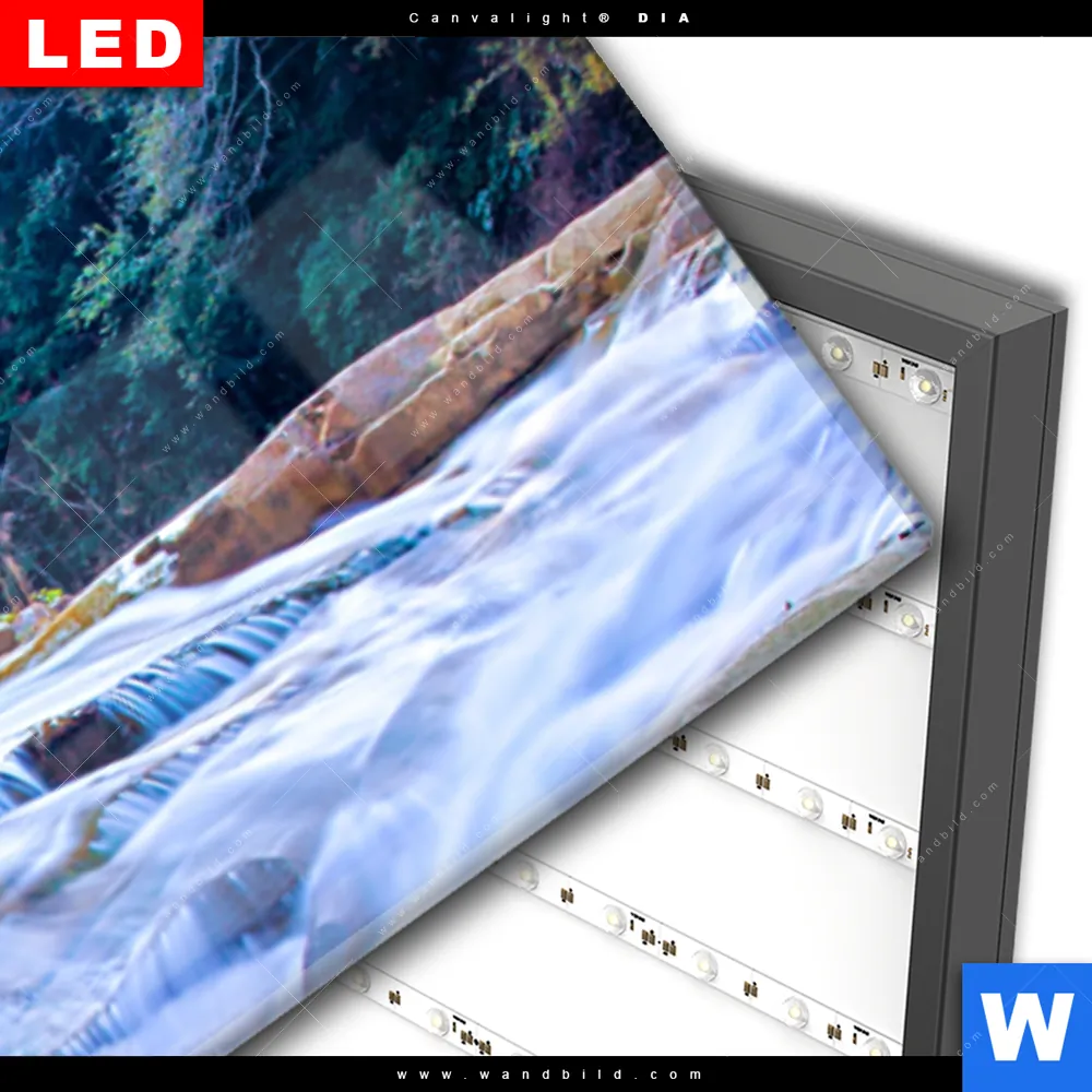 Wechselmotiv Acrylglas Canvalight® DIA | Schöner Wasserfall im Wald | Panorama