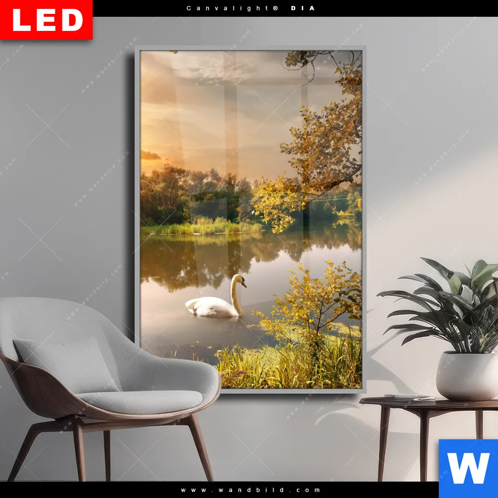 Wechselmotiv Acrylglas Canvalight® DIA | Schwan im Teich | Hochformat