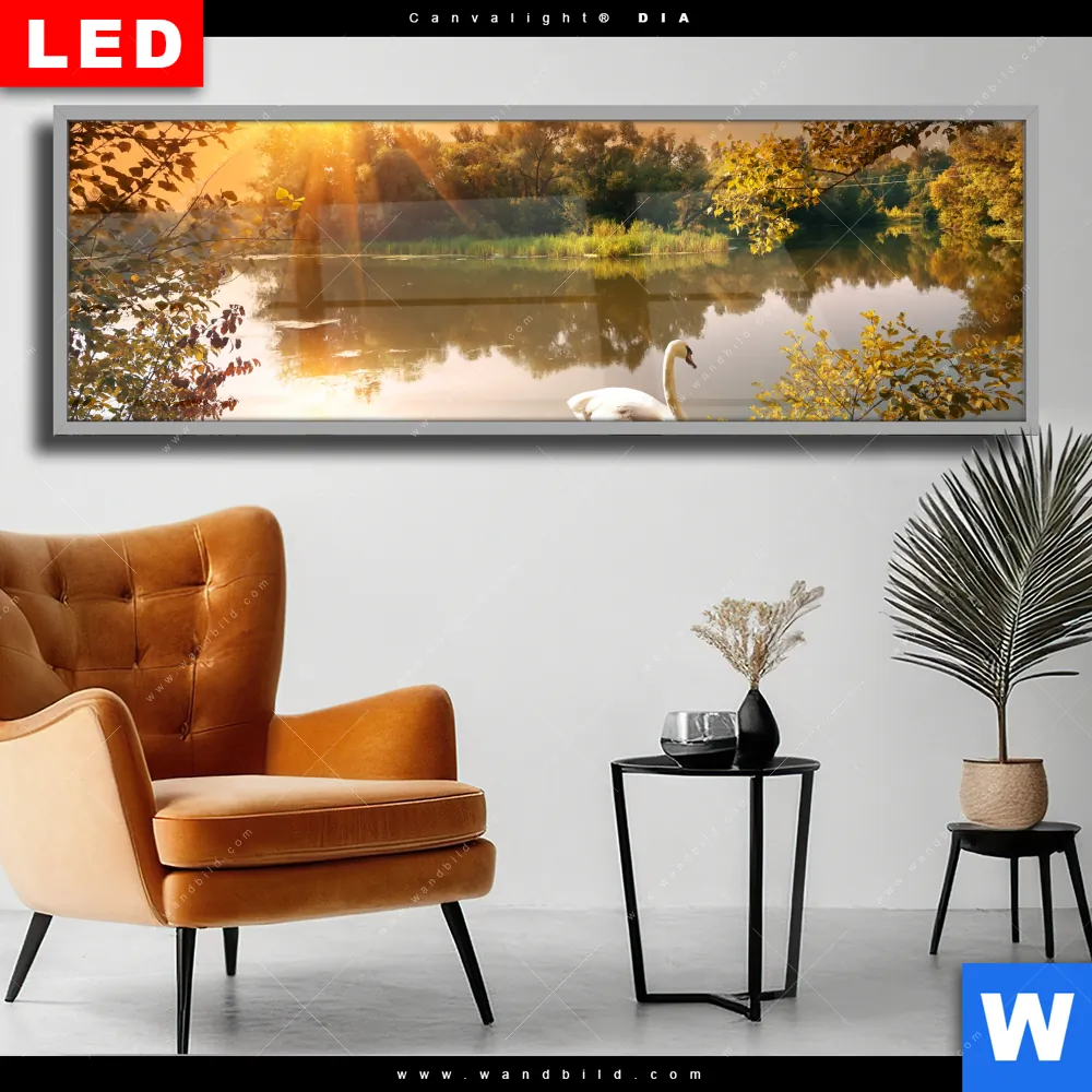 Wechselmotiv Acrylglas Canvalight® DIA | Schwan im Teich | Panorama