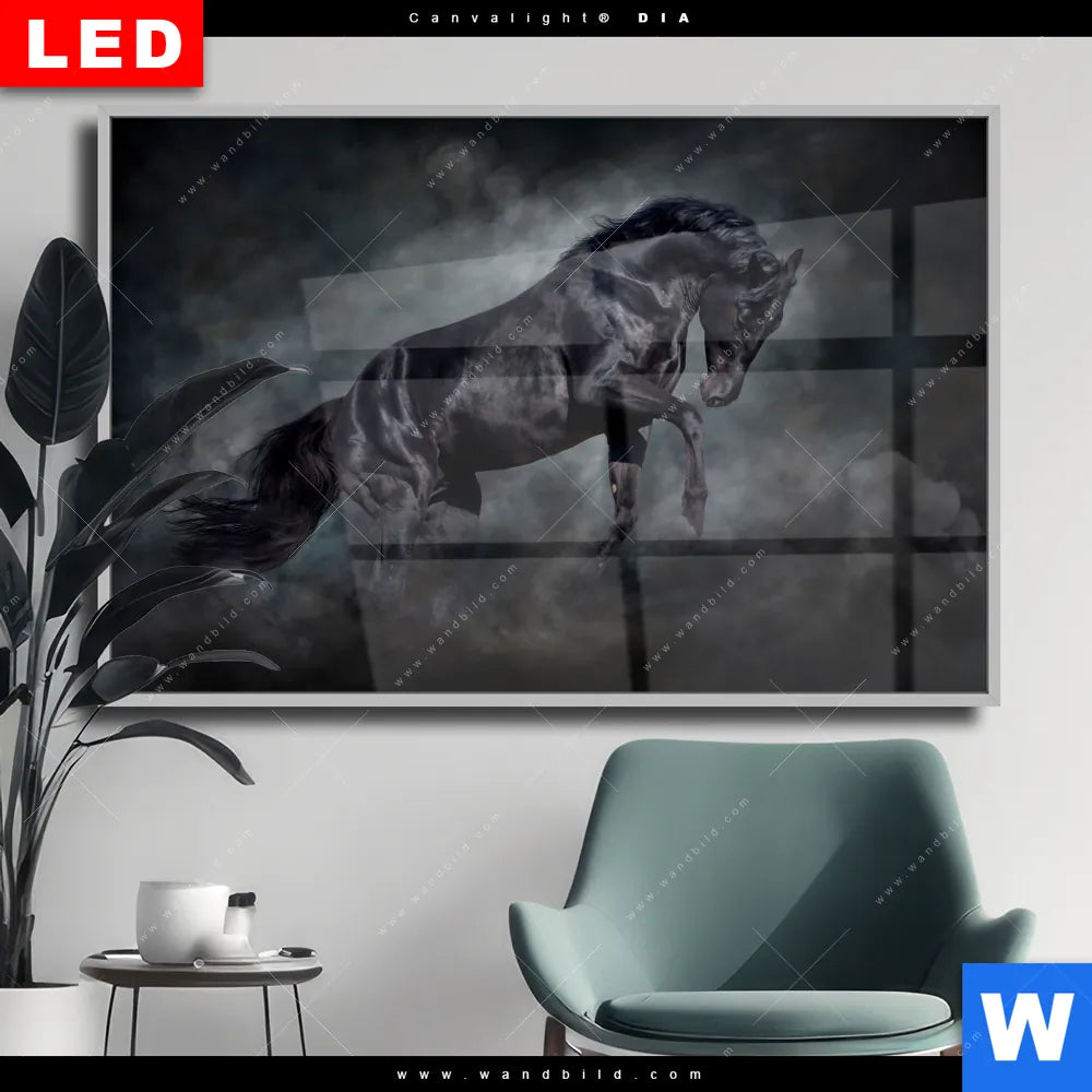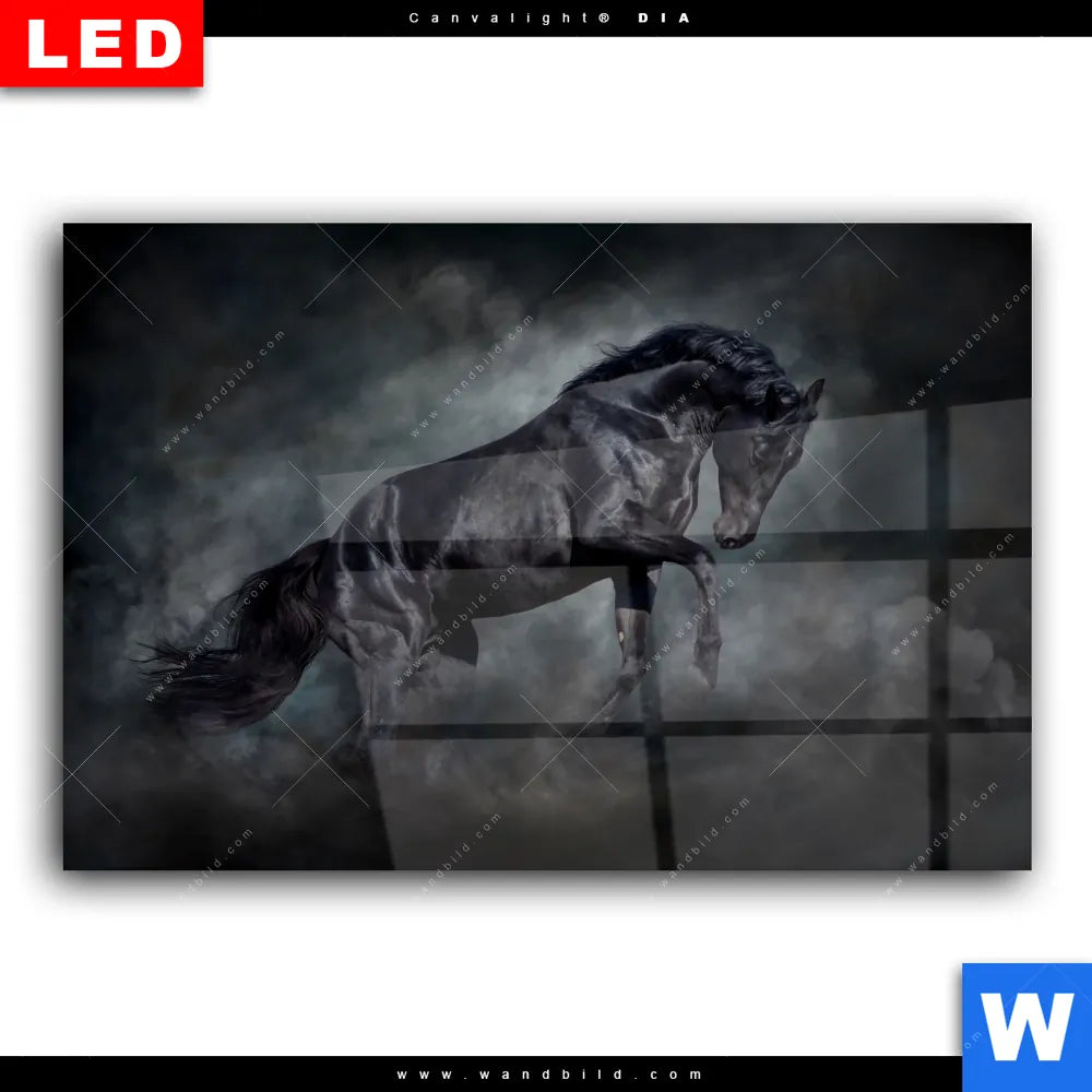 Wechselmotiv Acrylglas Canvalight® DIA | Schwarzer Hengst | Querformat