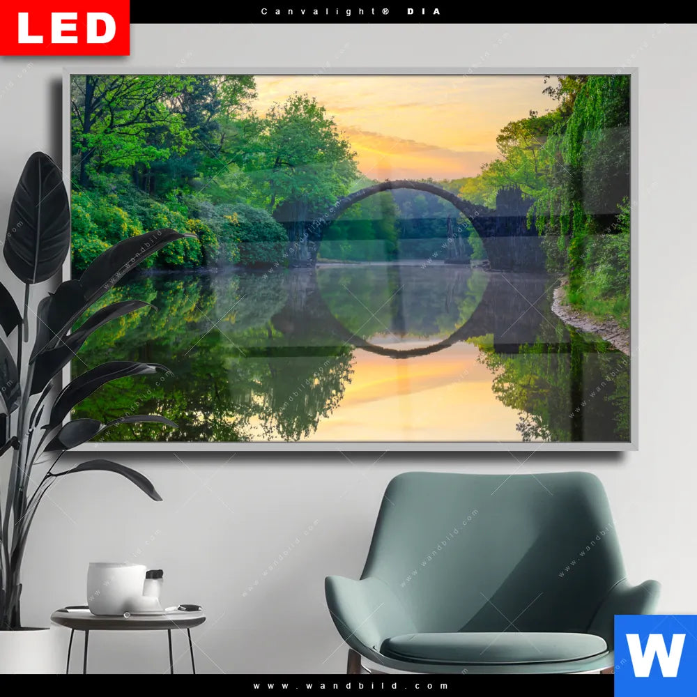 Wechselmotiv Acrylglas Canvalight® DIA | See mit alter Brücke aus Stein | Querformat