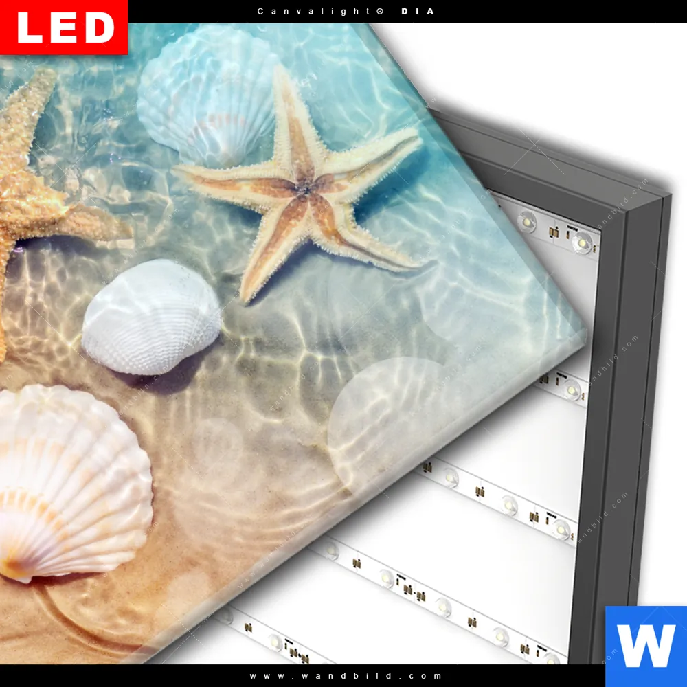 Wechselmotiv Acrylglas Canvalight® DIA | Seesterne & Muscheln | Hochformat