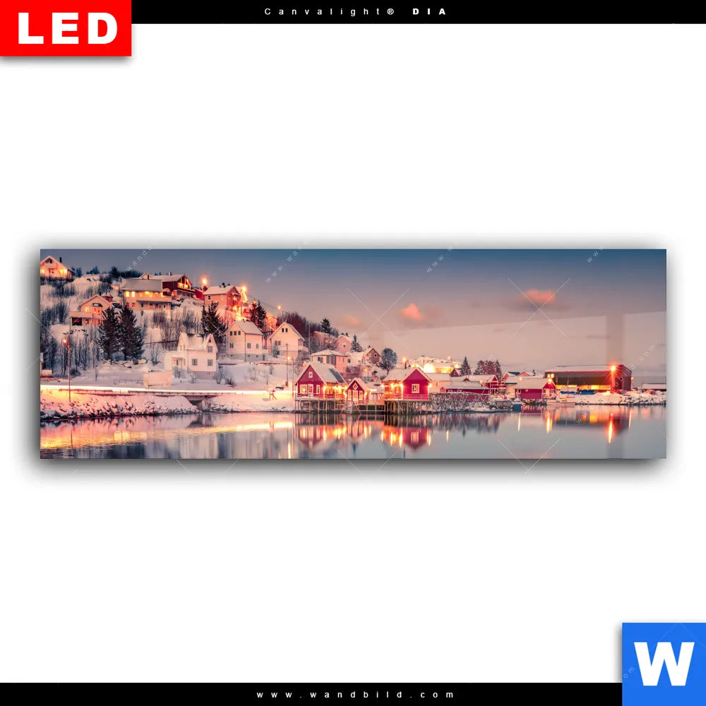 Wechselmotiv Acrylglas Canvalight® DIA | Skandinavische Stadt bei Nacht | Panorama