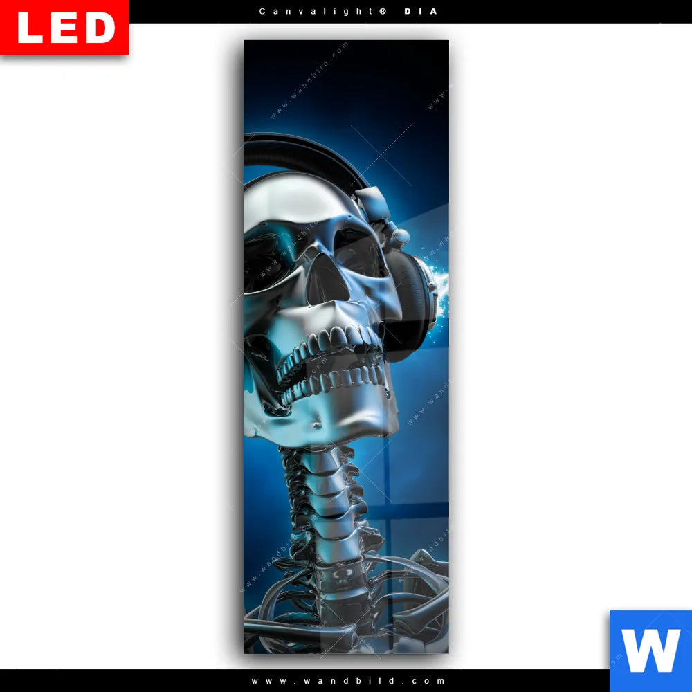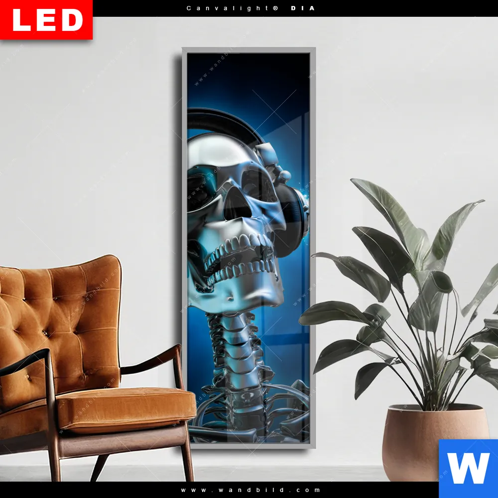 Wechselmotiv Acrylglas Canvalight® DIA | Skelett & Kopfhörer | Schmal