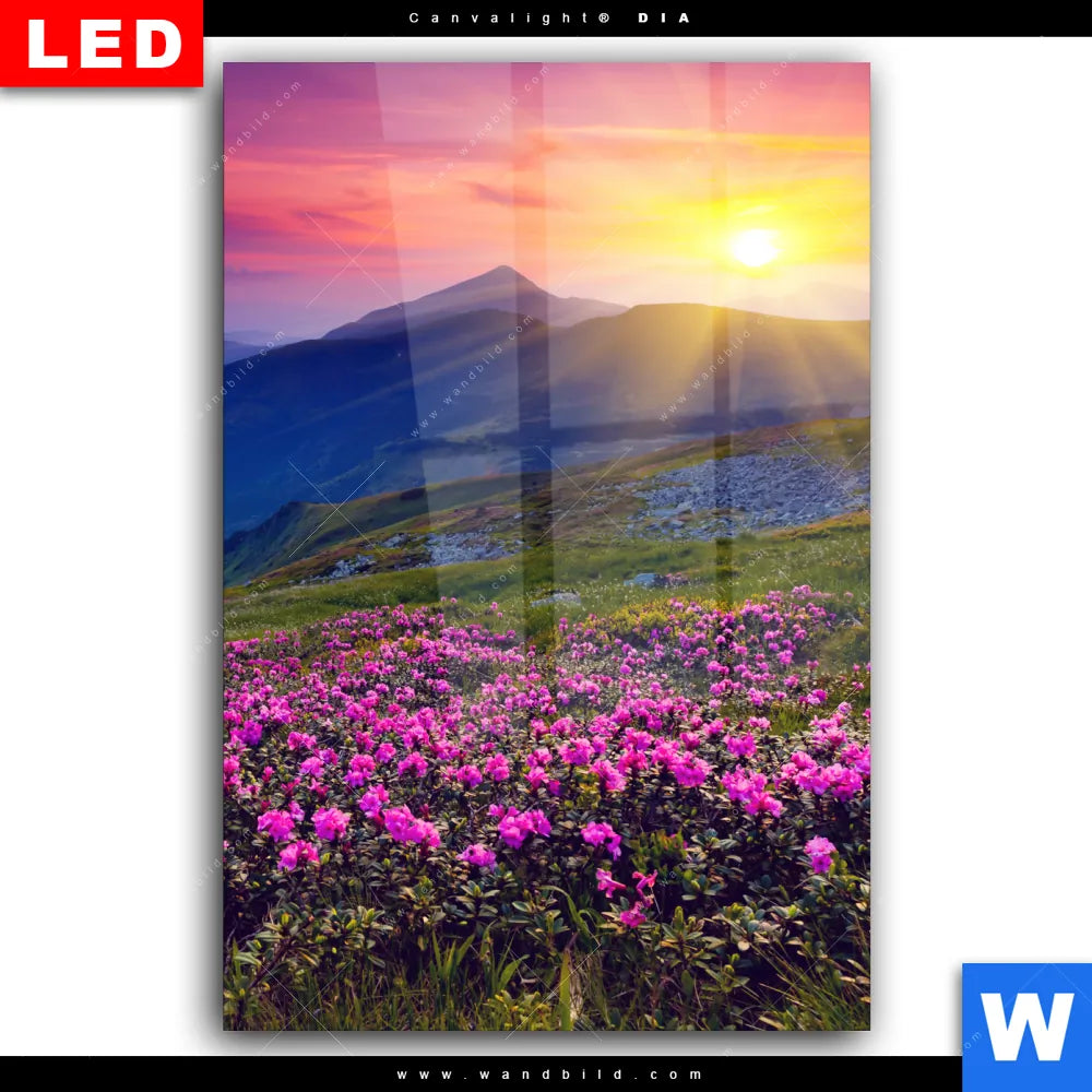 Wechselmotiv Acrylglas Canvalight® DIA | Sommerberg im Sonnenuntergang | Hochformat