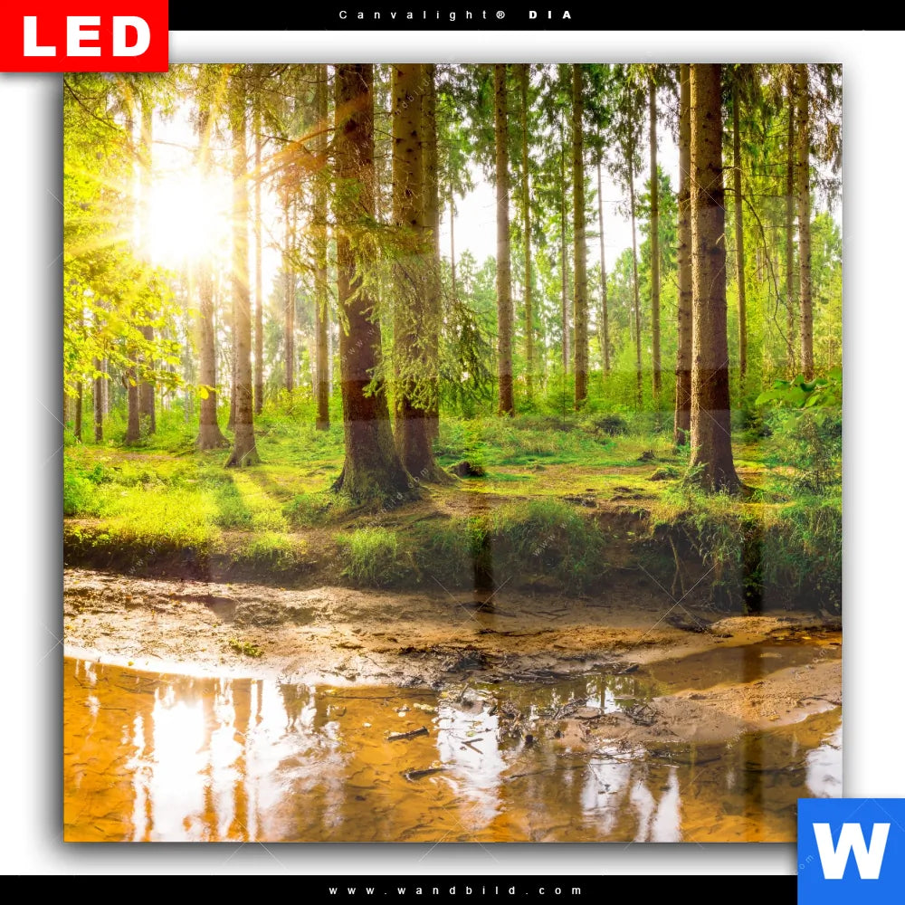 Wechselmotiv Acrylglas Canvalight® DIA | Sonne im grünen Wald | Quadrat