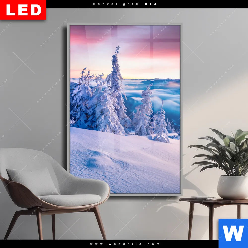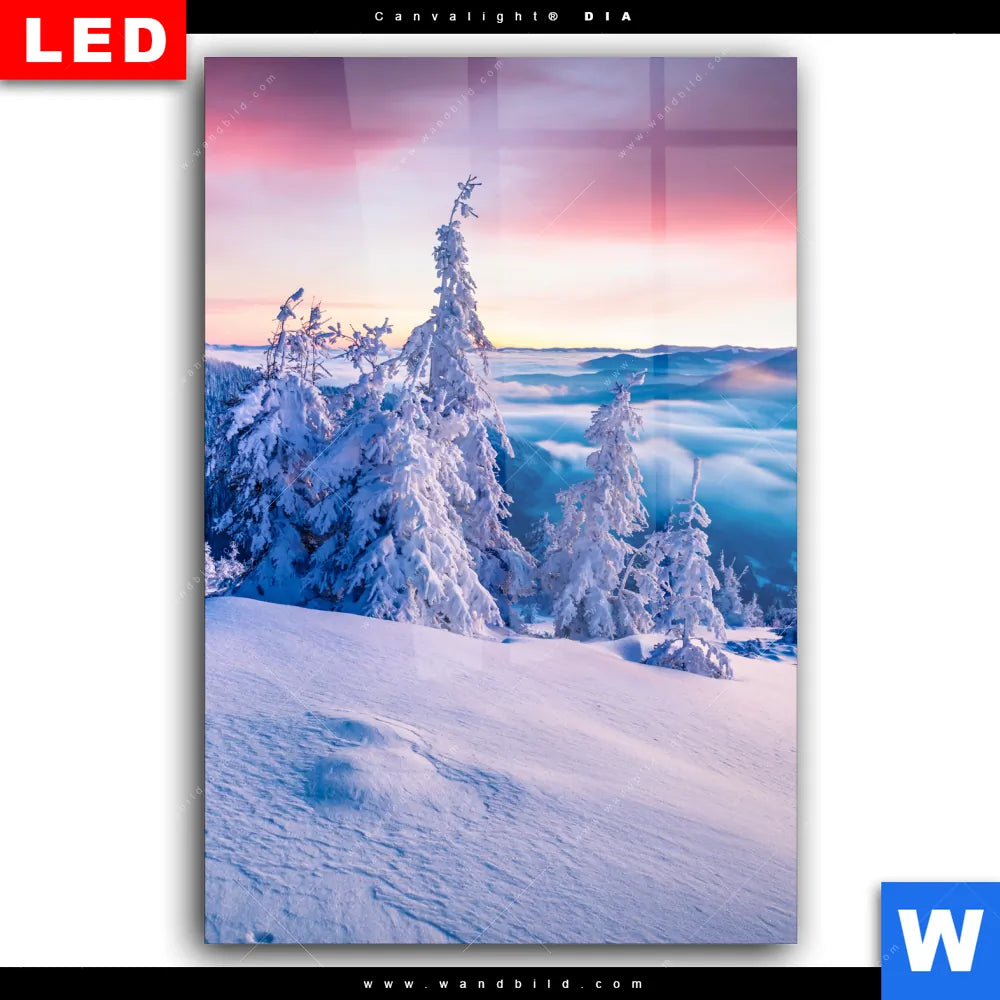 Wechselmotiv Acrylglas Canvalight® DIA | Sonnenaufgang im Schnee | Hochformat