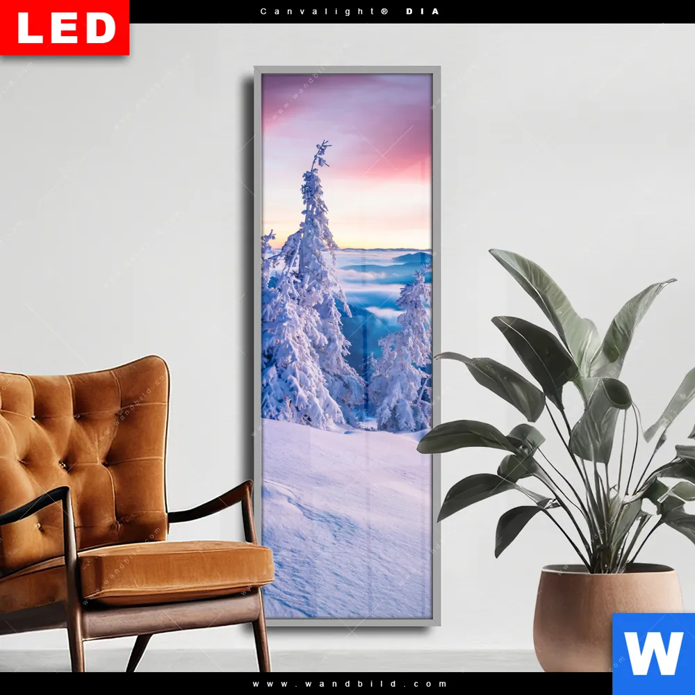 Wechselmotiv Acrylglas Canvalight® DIA | Sonnenaufgang im Schnee | Schmal
