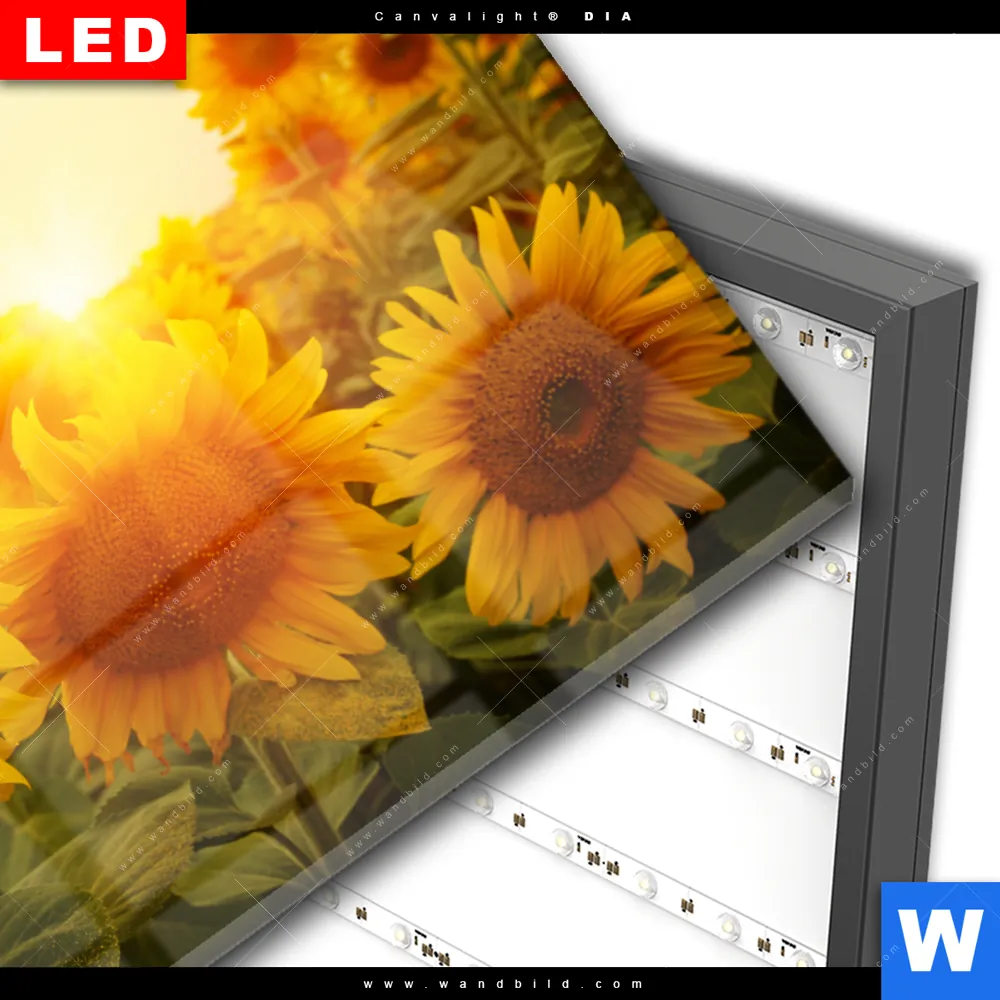 Wechselmotiv Acrylglas Canvalight® DIA | Sonnenblumen im Abendlicht | Querformat
