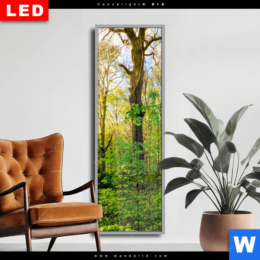 Wechselmotiv Acrylglas Canvalight® DIA | Sonnenlicht im Wald | Schmal