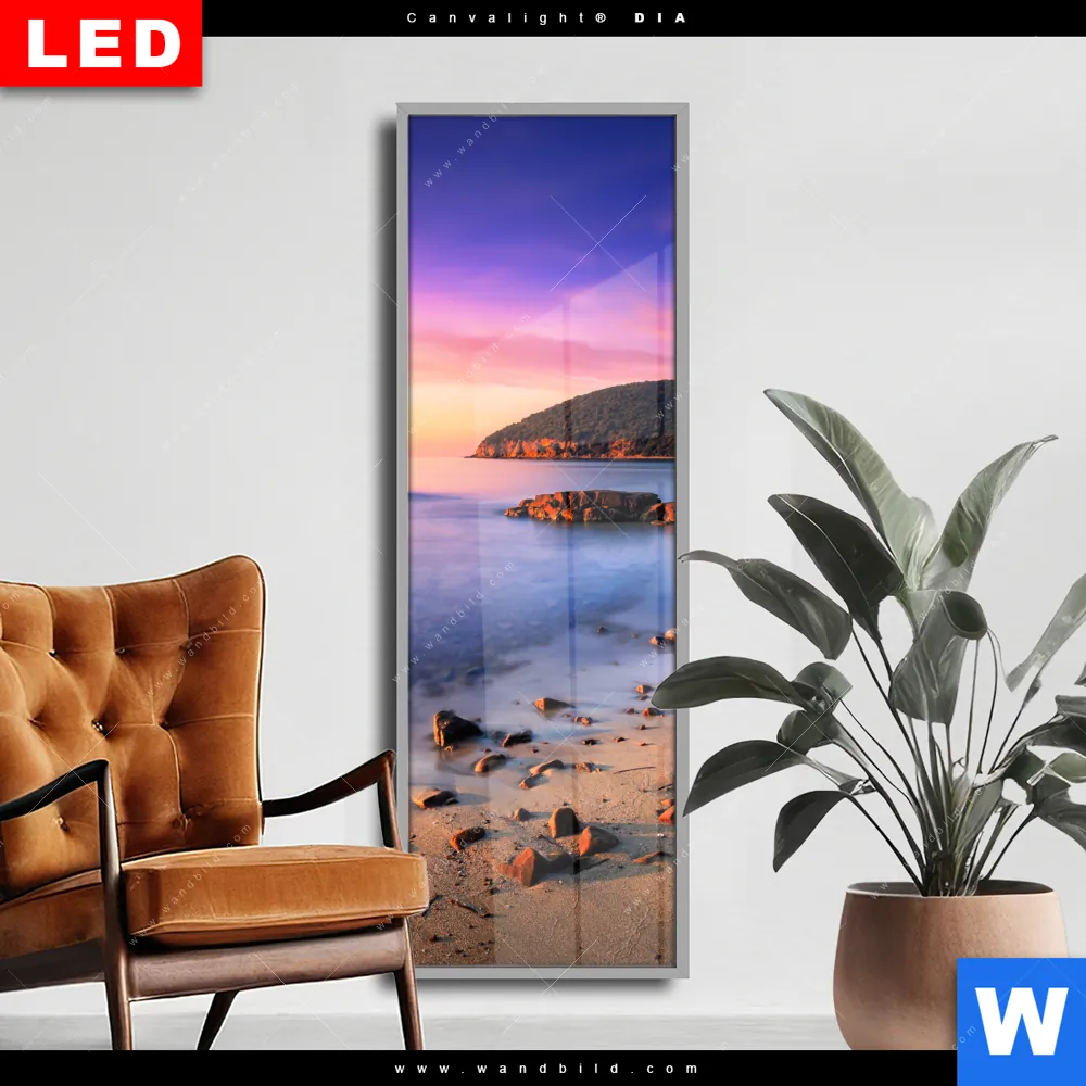 Wechselmotiv Acrylglas Canvalight® DIA | Sonnenuntergang in Bucht | Schmal