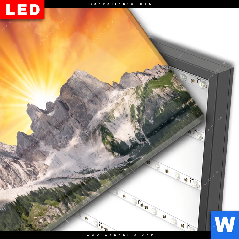 Wechselmotiv Acrylglas Canvalight® DIA | Sonnenuntergang in den Bergen | Querformat