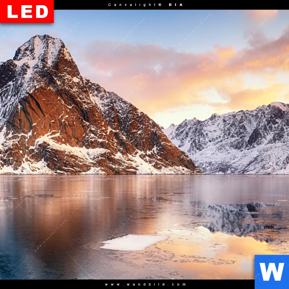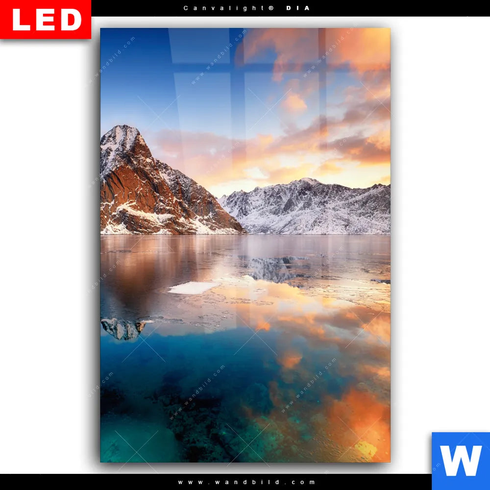 Wechselmotiv Acrylglas Canvalight® DIA | Sonnenuntergang Norwegen | Hochformat