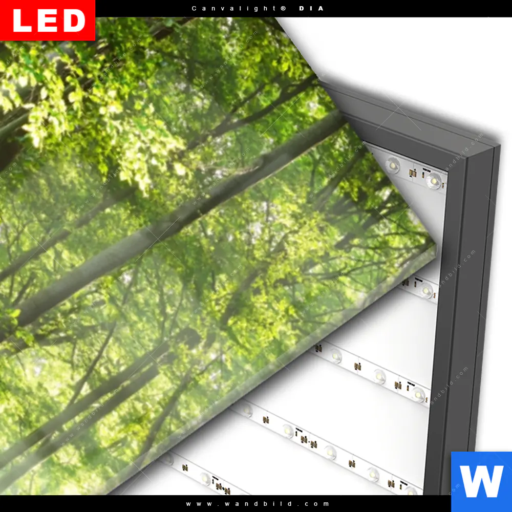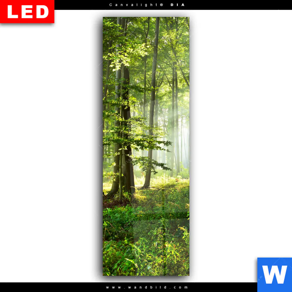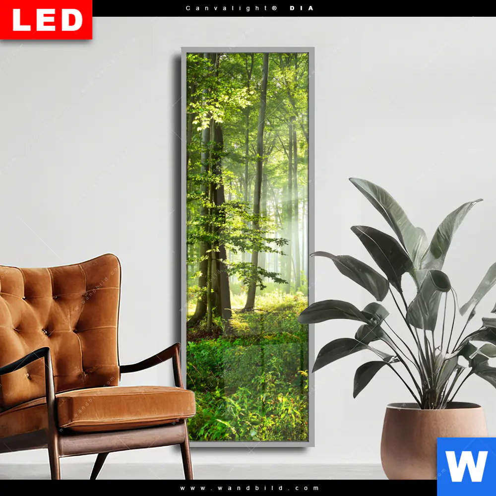 Wechselmotiv Acrylglas Canvalight® DIA | Sonniger Morgen im Wald | Schmal