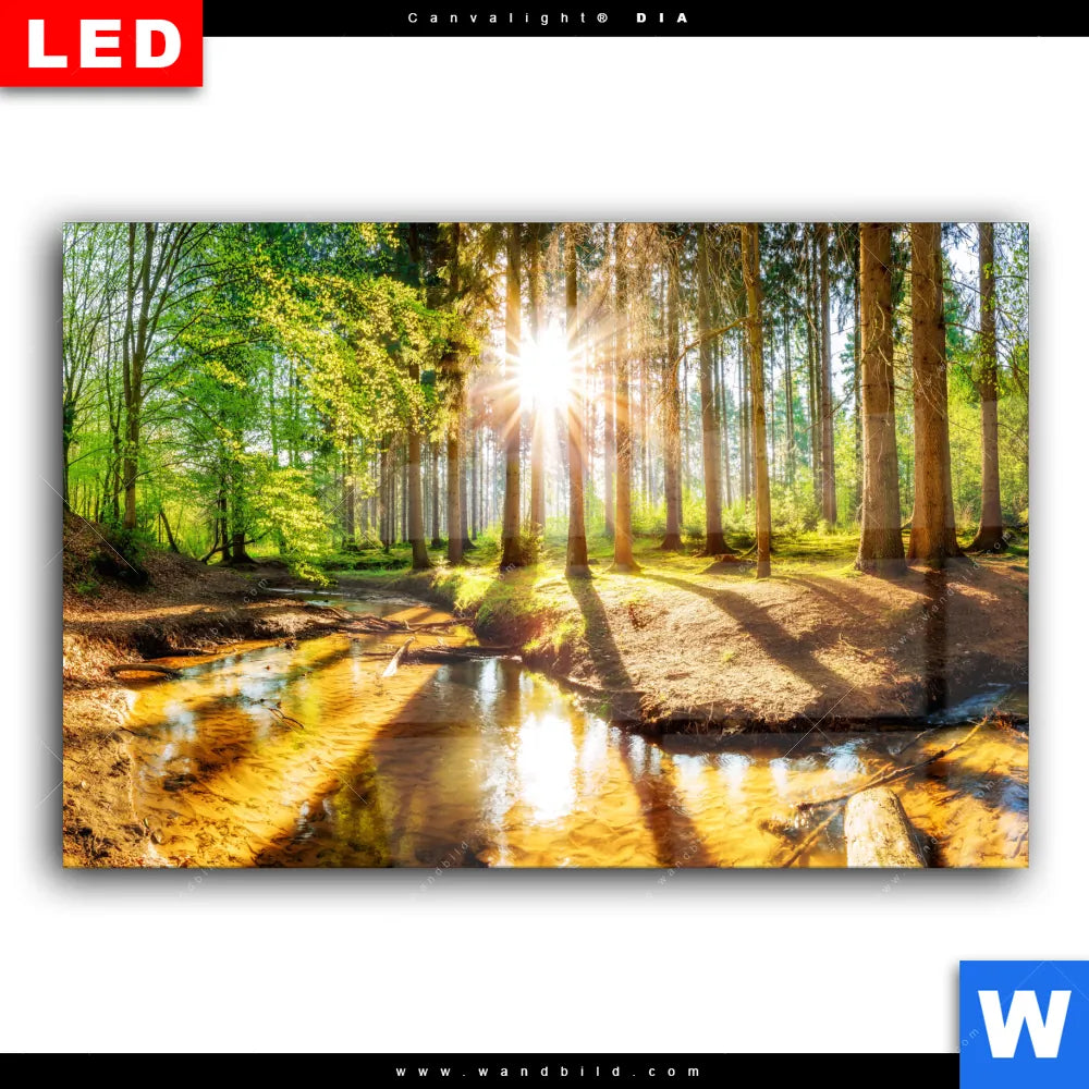 Wechselmotiv Acrylglas Canvalight® DIA | Sonniger Wald | Querformat