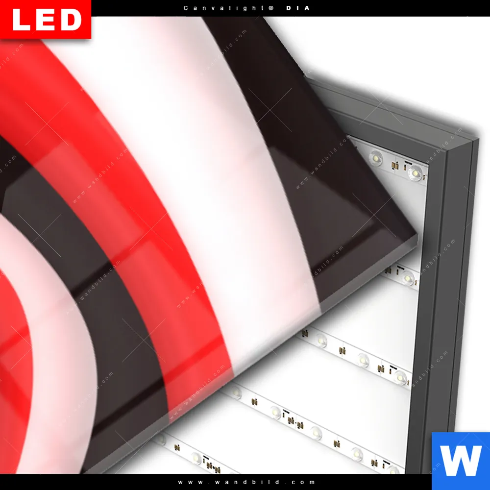Wechselmotiv Acrylglas Canvalight® DIA | Spirale in rot weiß schwarz | Panorama