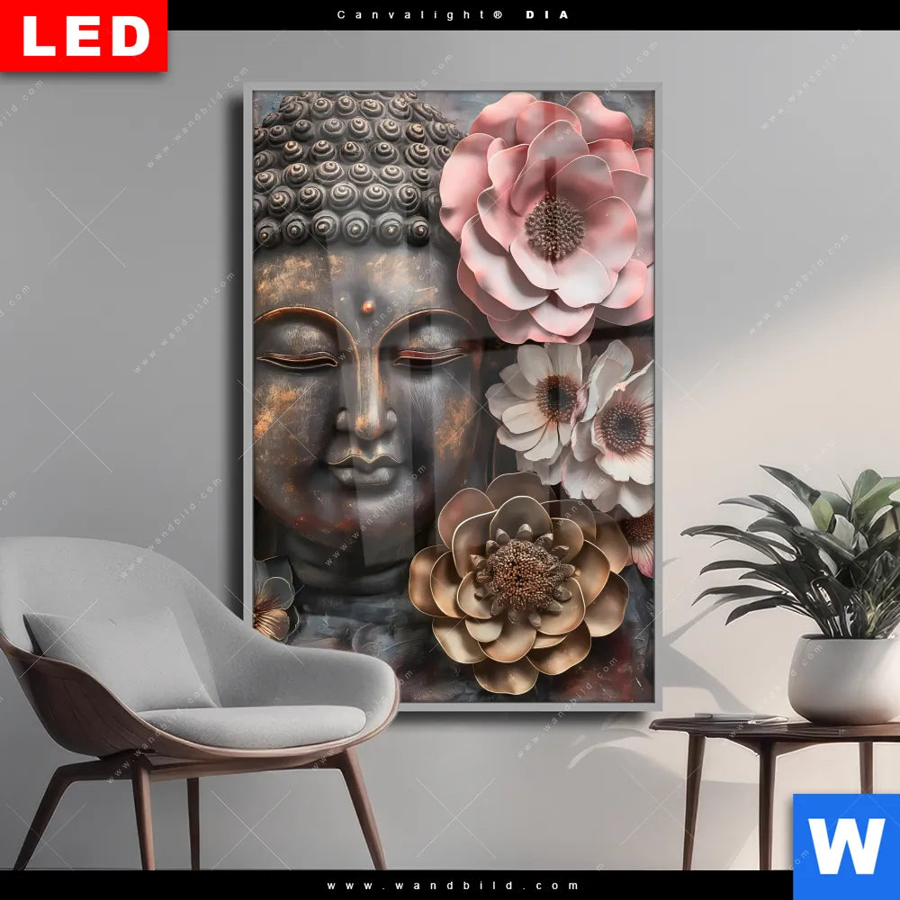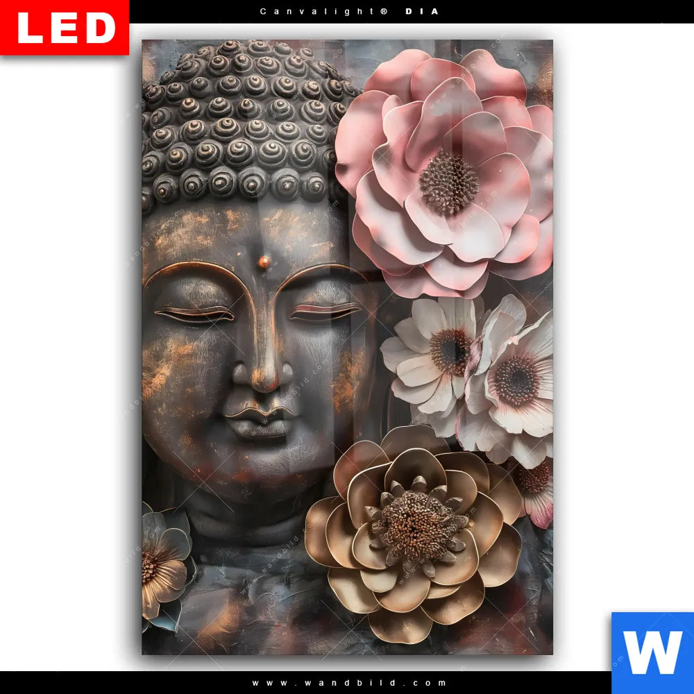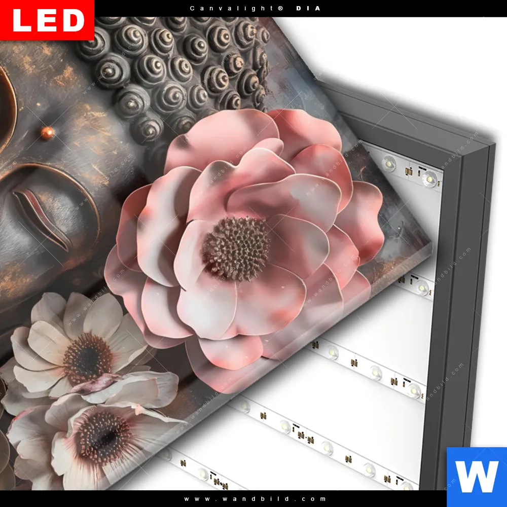 Wechselmotiv Acrylglas Canvalight® DIA | Spiritueller Buddha und Blumen | Hochformat