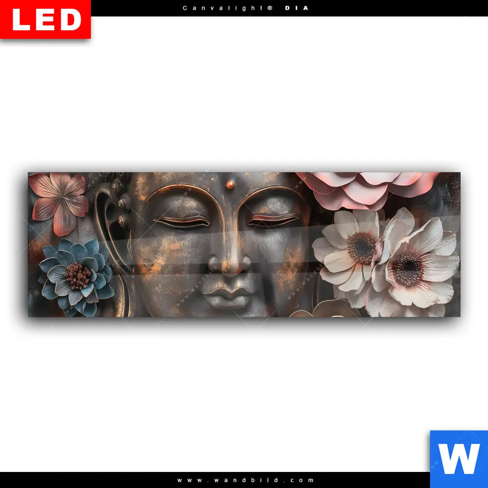 Wechselmotiv Acrylglas Canvalight® DIA | Spiritueller Buddha und Blumen | Panorama
