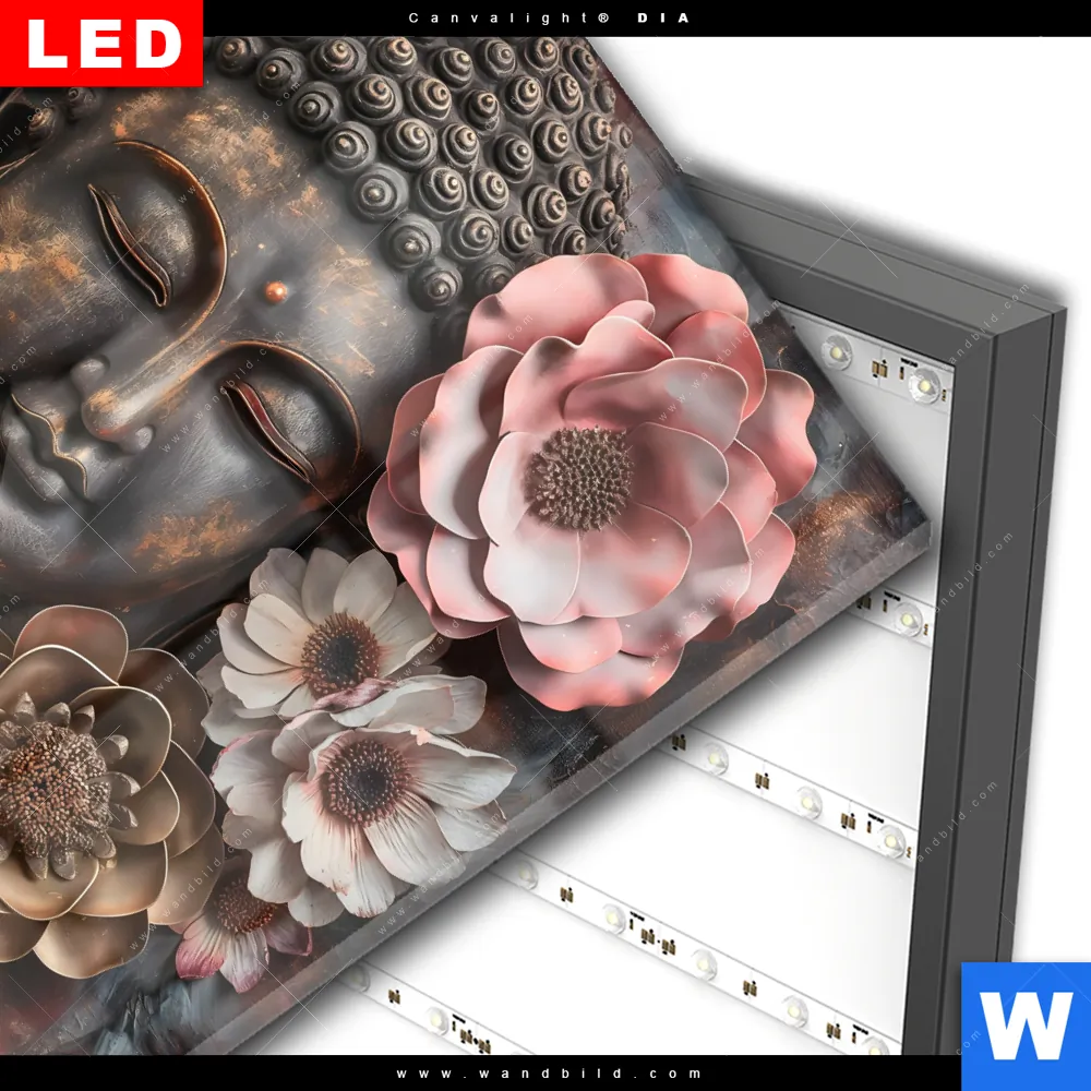 Wechselmotiv Acrylglas Canvalight® DIA | Spiritueller Buddha und Blumen | Quadrat