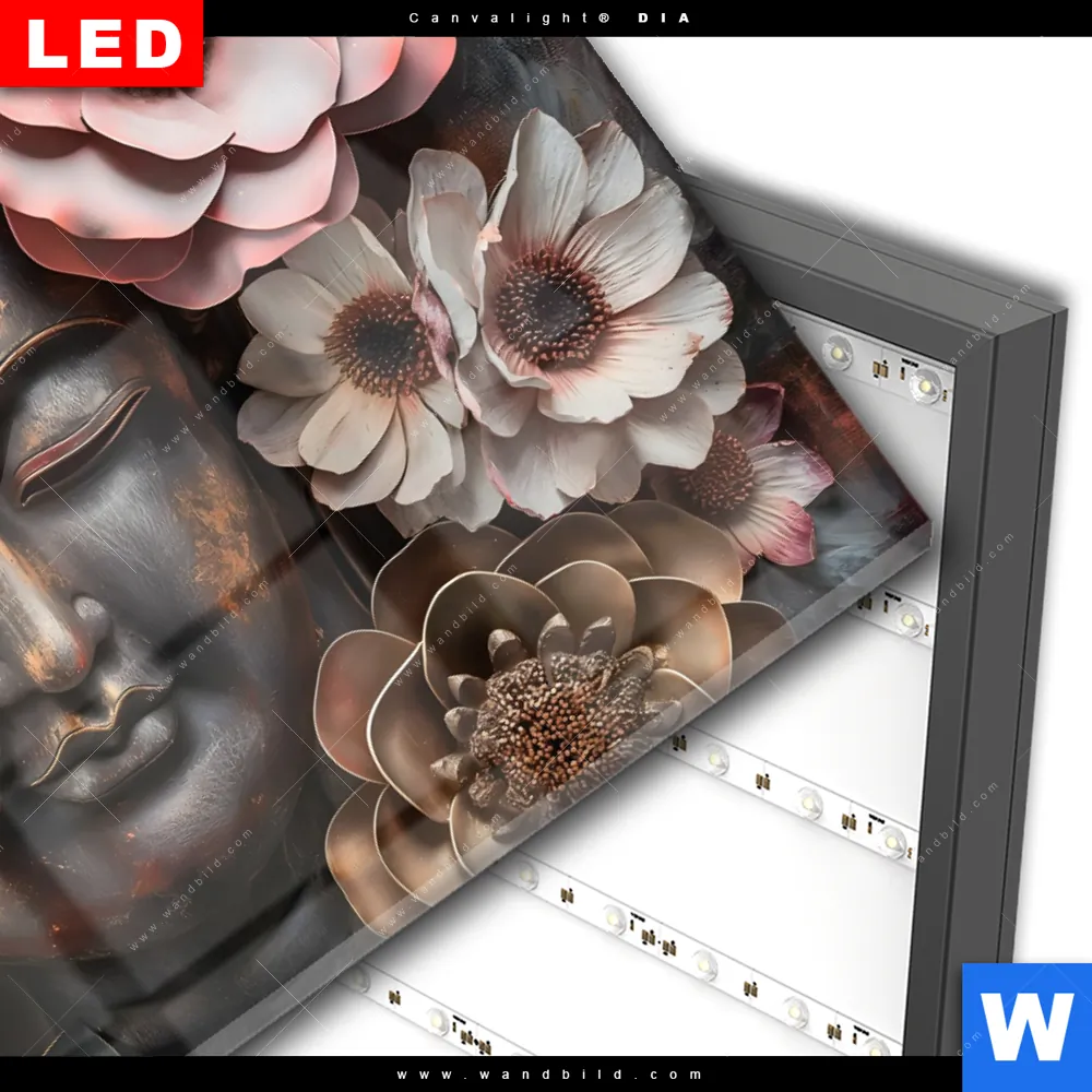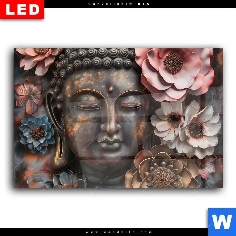 Wechselmotiv Acrylglas Canvalight® DIA | Spiritueller Buddha und Blumen | Querformat