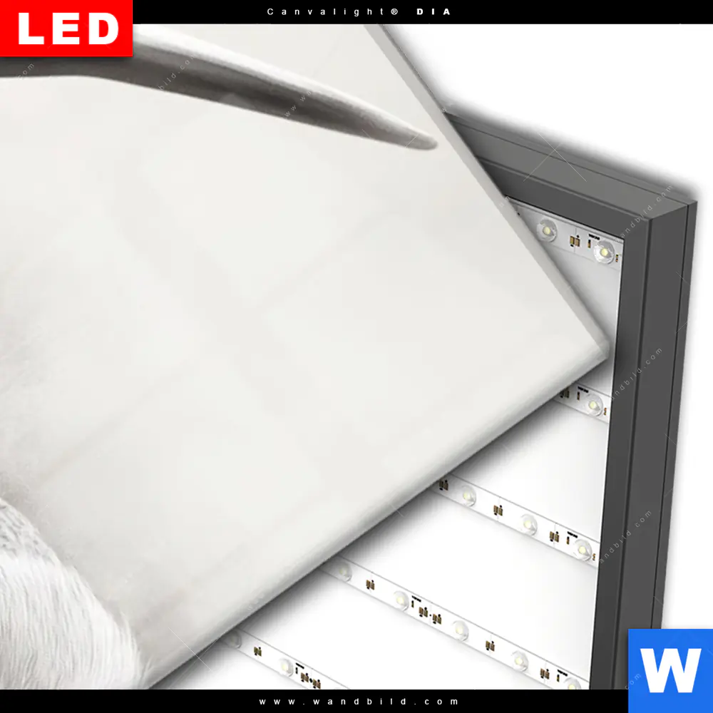 BEACHTE: Du solltest bereits ein Canvalight® DIA Leuchtbild mit austauschbarem Acrylglas-Motiv besitzen! Im Lieferumfang ist nur ein Wechsel-Acrylglas-Druck ohne Leuchtrahmen enthalten. Der Abdeckwinkel im Frontbereich des LED Bildes deckt umlaufend ca. 19 mm des Motives ab. Bei eigenen Motiven bitte darauf achten, wichtige Elemente in ausreichender Entfernung vom Rand zu platzieren, damit diese nicht verdeckt werden.