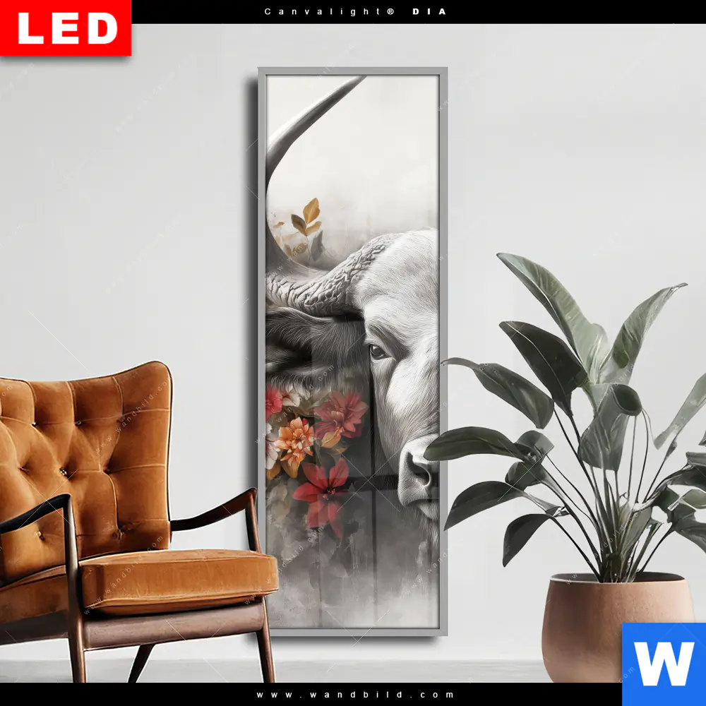 Wechselmotiv Acrylglas Canvalight® DIA | Starker Bulle mit Blumen | Schmal
