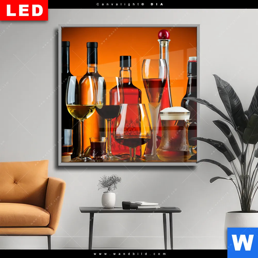 Wechselmotiv Acrylglas Canvalight® DIA | Stillleben Flaschen Gläser | Quadrat