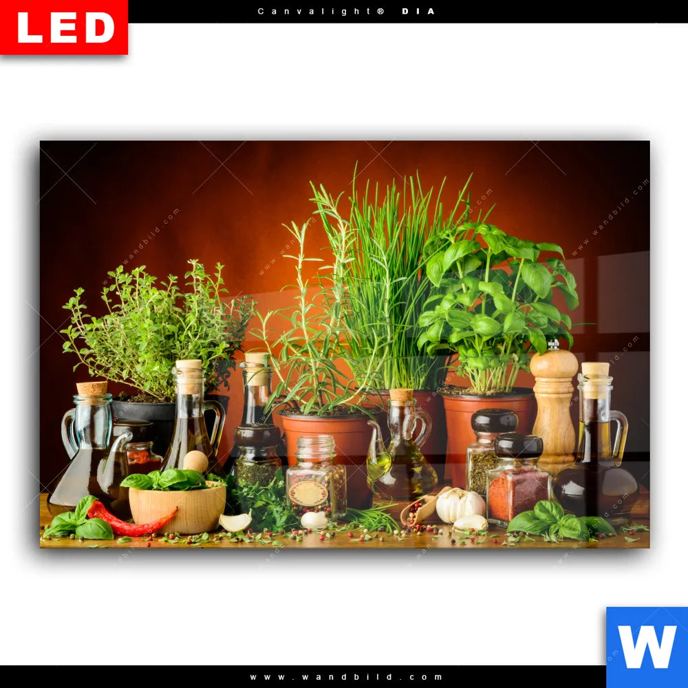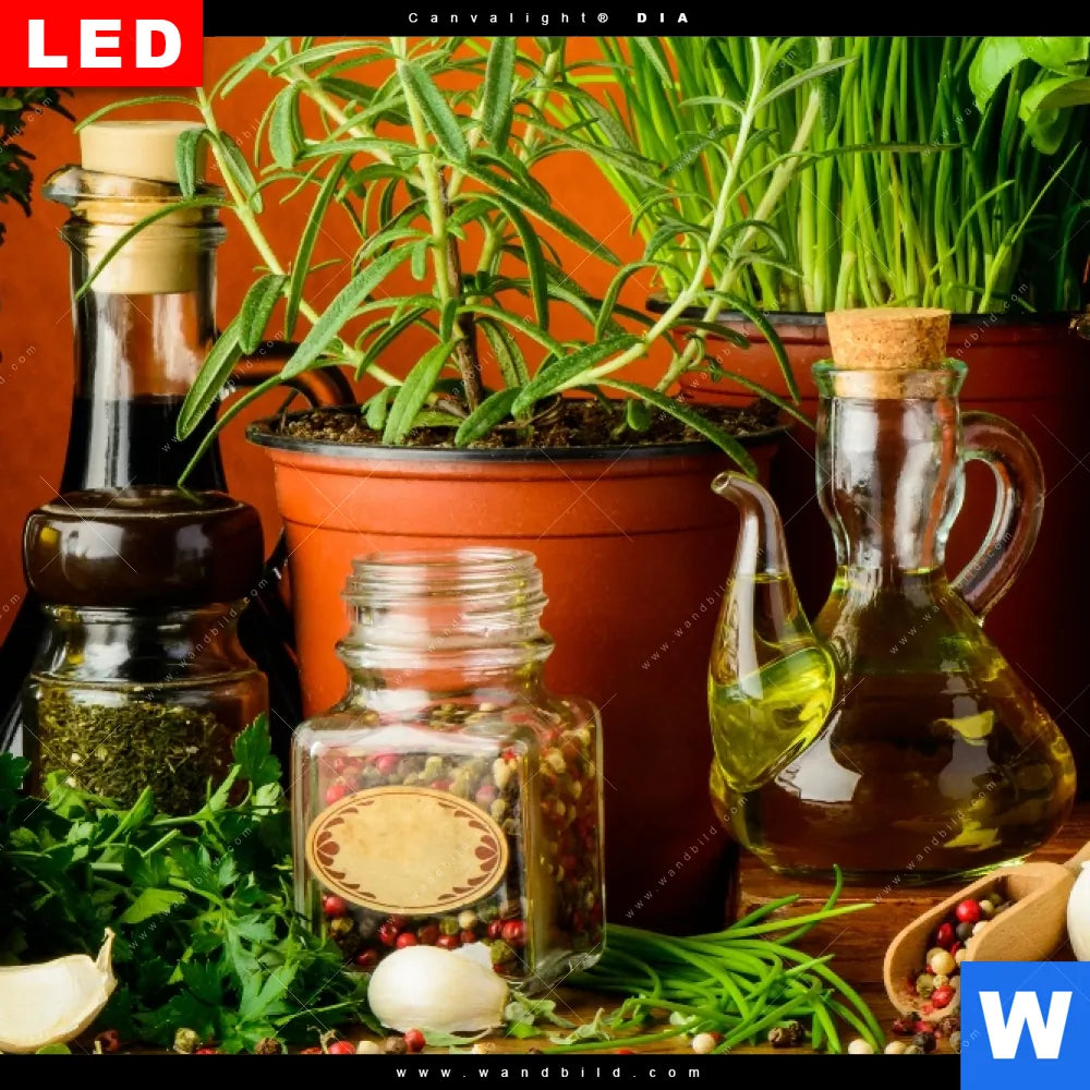 Wechselmotiv Acrylglas Canvalight® DIA | Stillleben mit mediterranen Kräutern | Querformat
