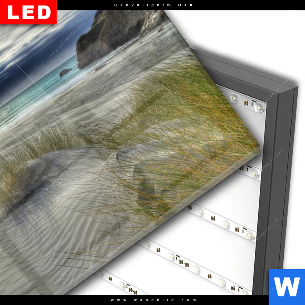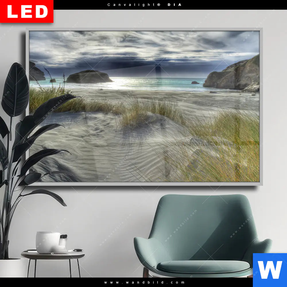 Wechselmotiv Acrylglas Canvalight® DIA | Stürmischer Himmel am Strand | Querformat
