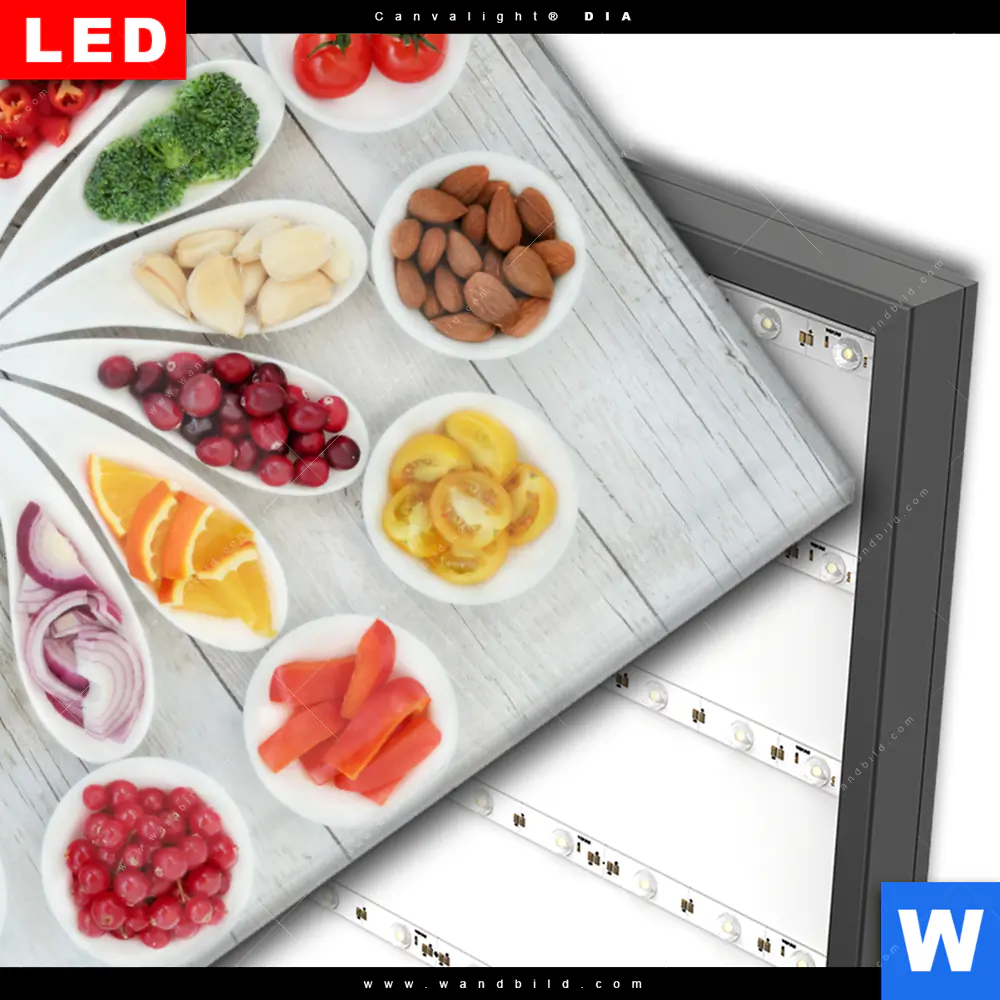 Wechselmotiv Acrylglas Canvalight® DIA | Superfoods im Farbkreis | Hochformat