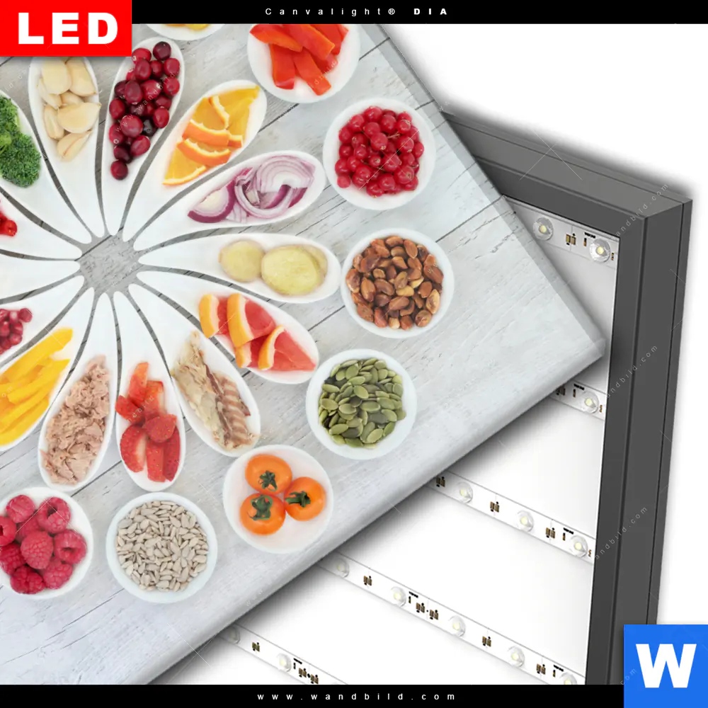Wechselmotiv Acrylglas Canvalight® DIA | Superfoods im Farbkreis | Quadrat