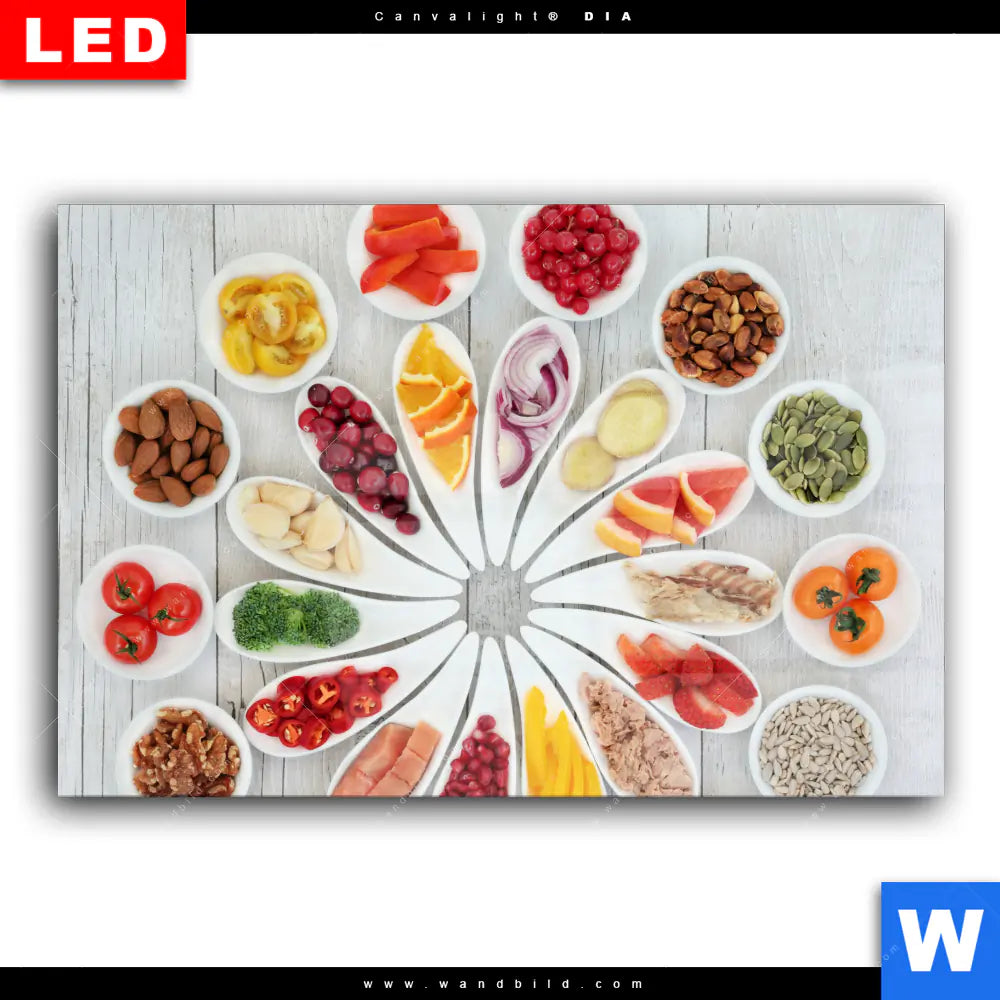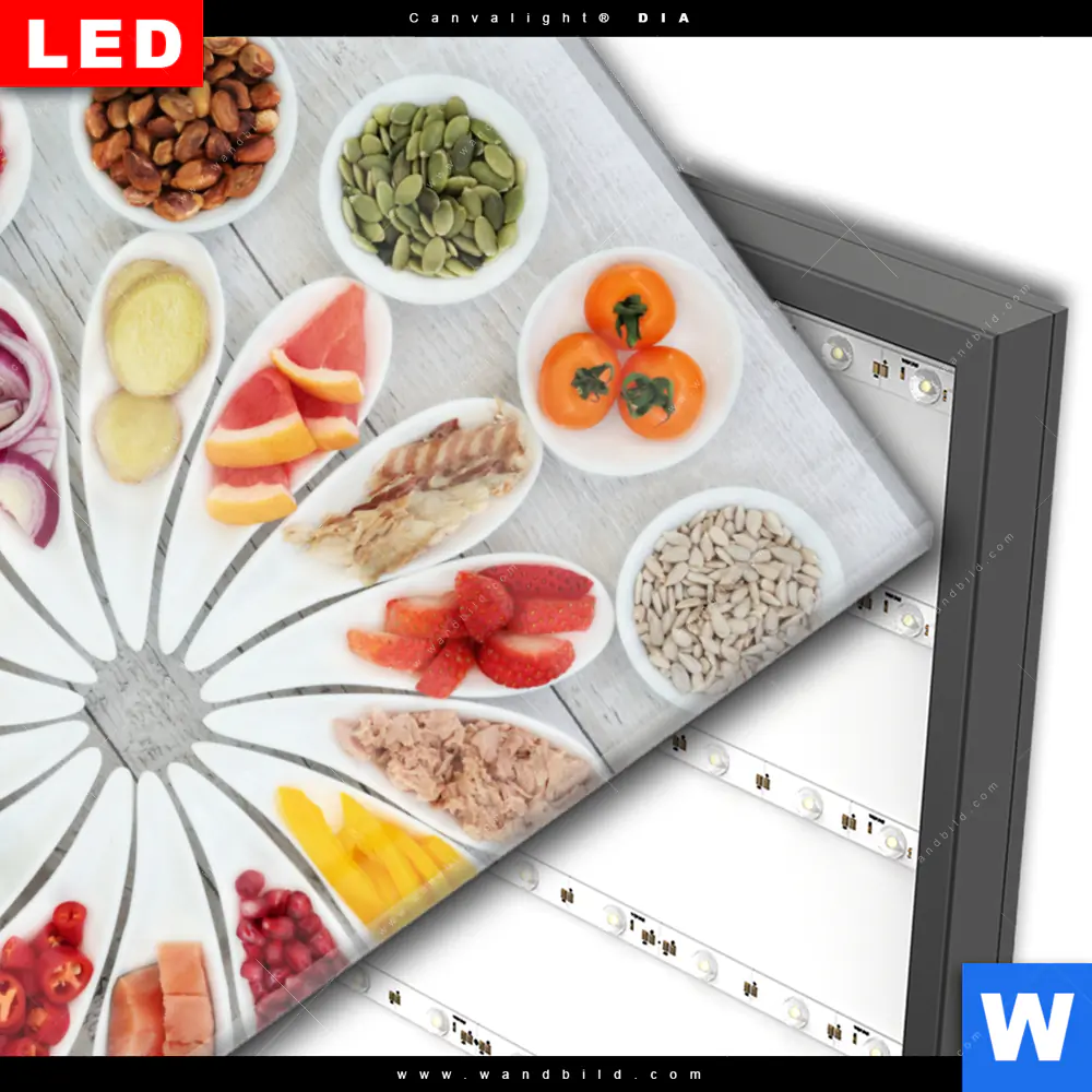 Wechselmotiv Acrylglas Canvalight® DIA | Superfoods im Farbkreis | Querformat