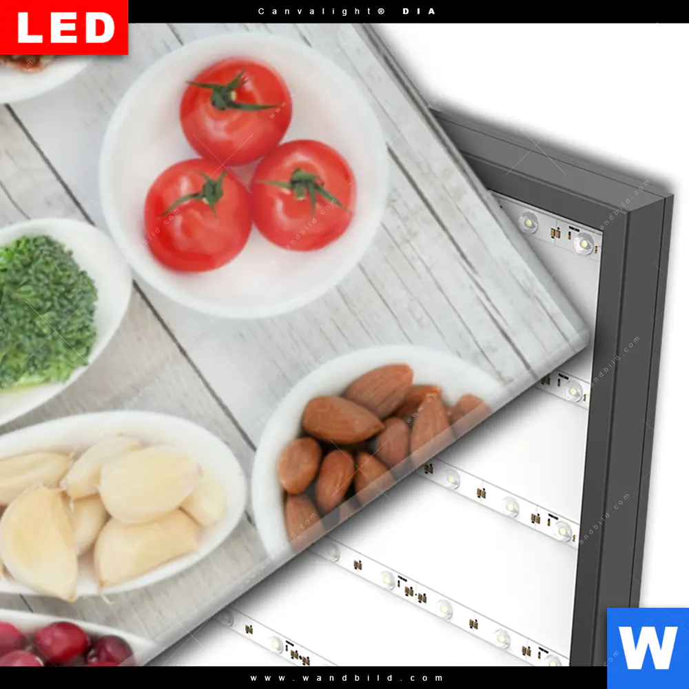 Wechselmotiv Acrylglas Canvalight® DIA | Superfoods im Farbkreis | Schmal