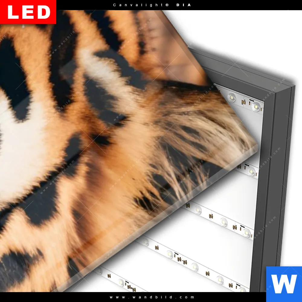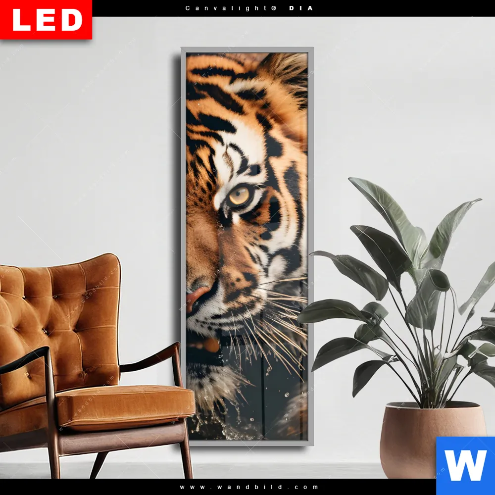 Wechselmotiv Acrylglas Canvalight® DIA | Tiger im Wasser | Schmal