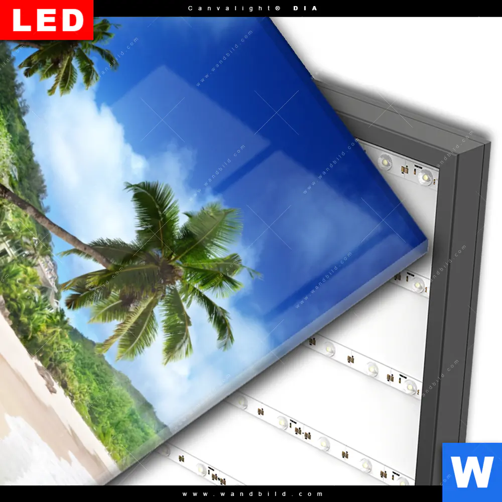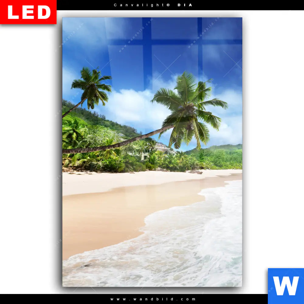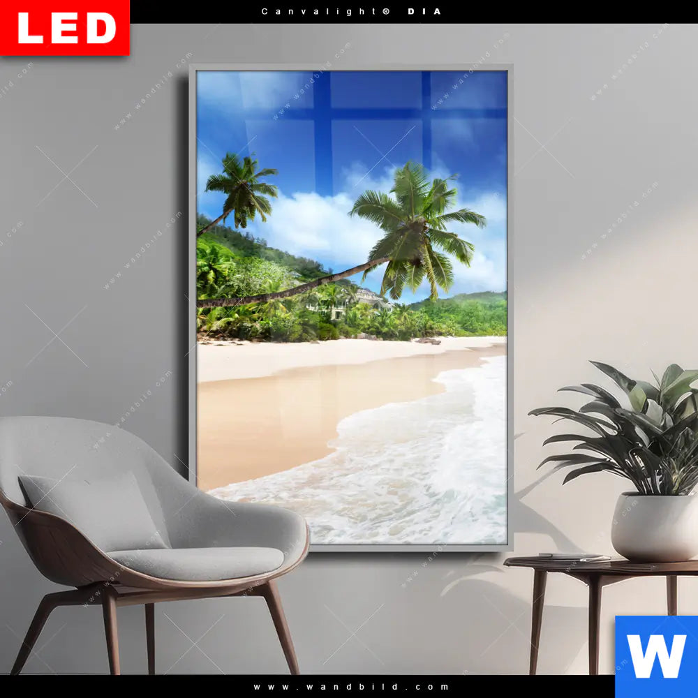 Wechselmotiv Acrylglas Canvalight® DIA | Traumstrand unter Palmen | Hochformat