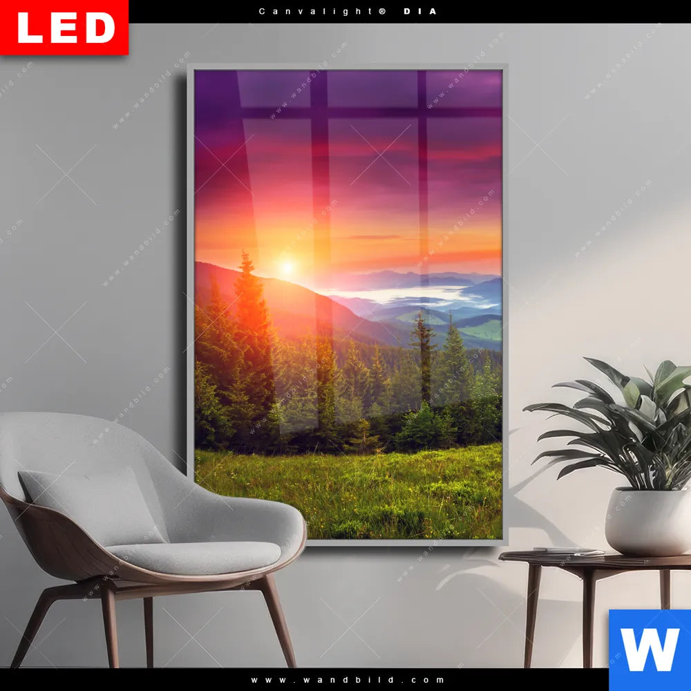 Wechselmotiv Acrylglas Canvalight® DIA | Wald bei Sonnenuntergang | Hochformat