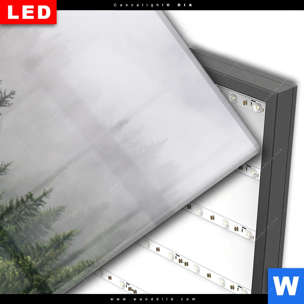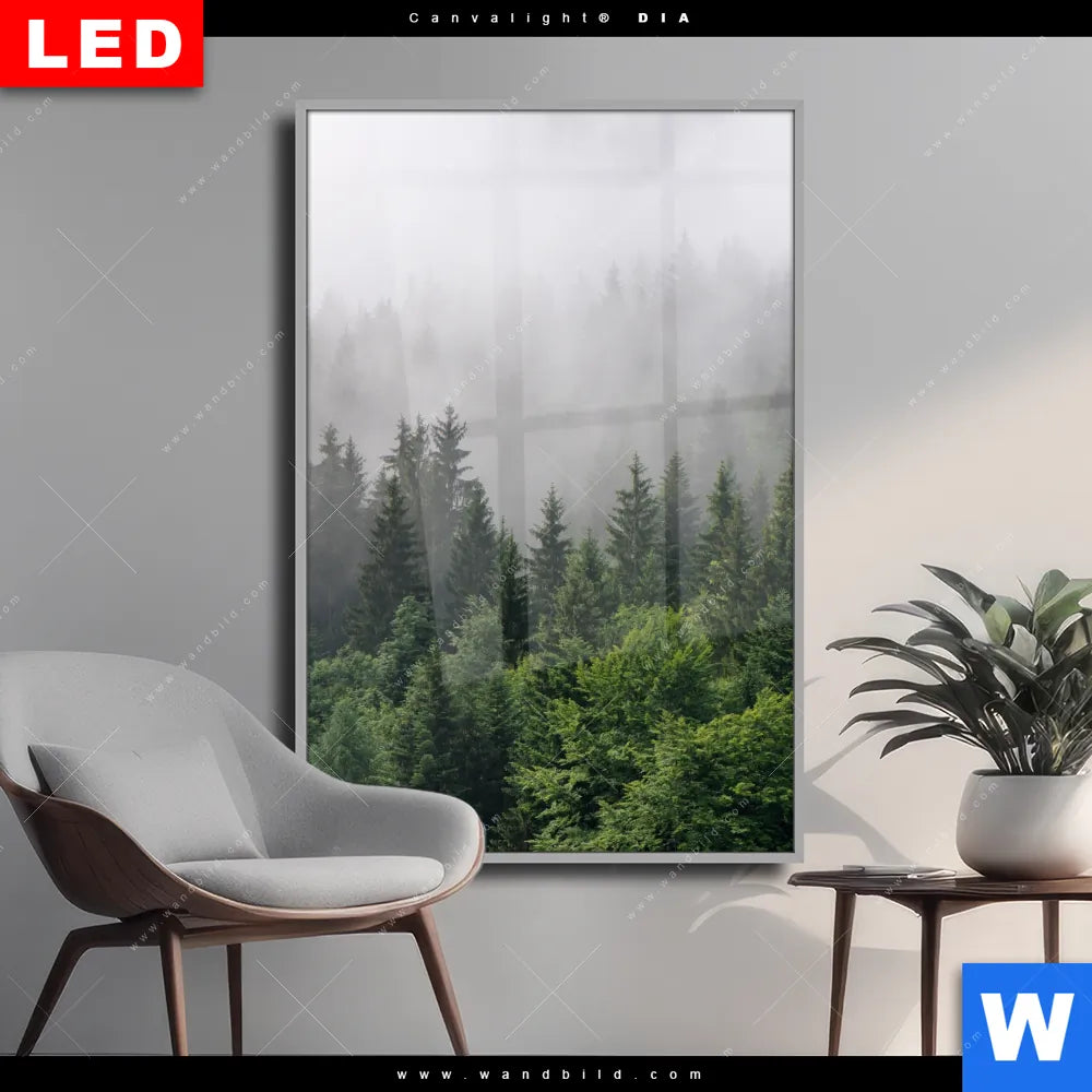 Wechselmotiv Acrylglas Canvalight® DIA | Wald im Nebel | Hochformat