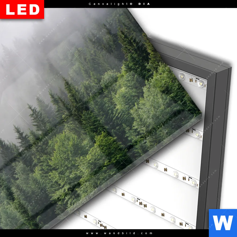 Wechselmotiv Acrylglas Canvalight® DIA | Wald im Nebel | Querformat