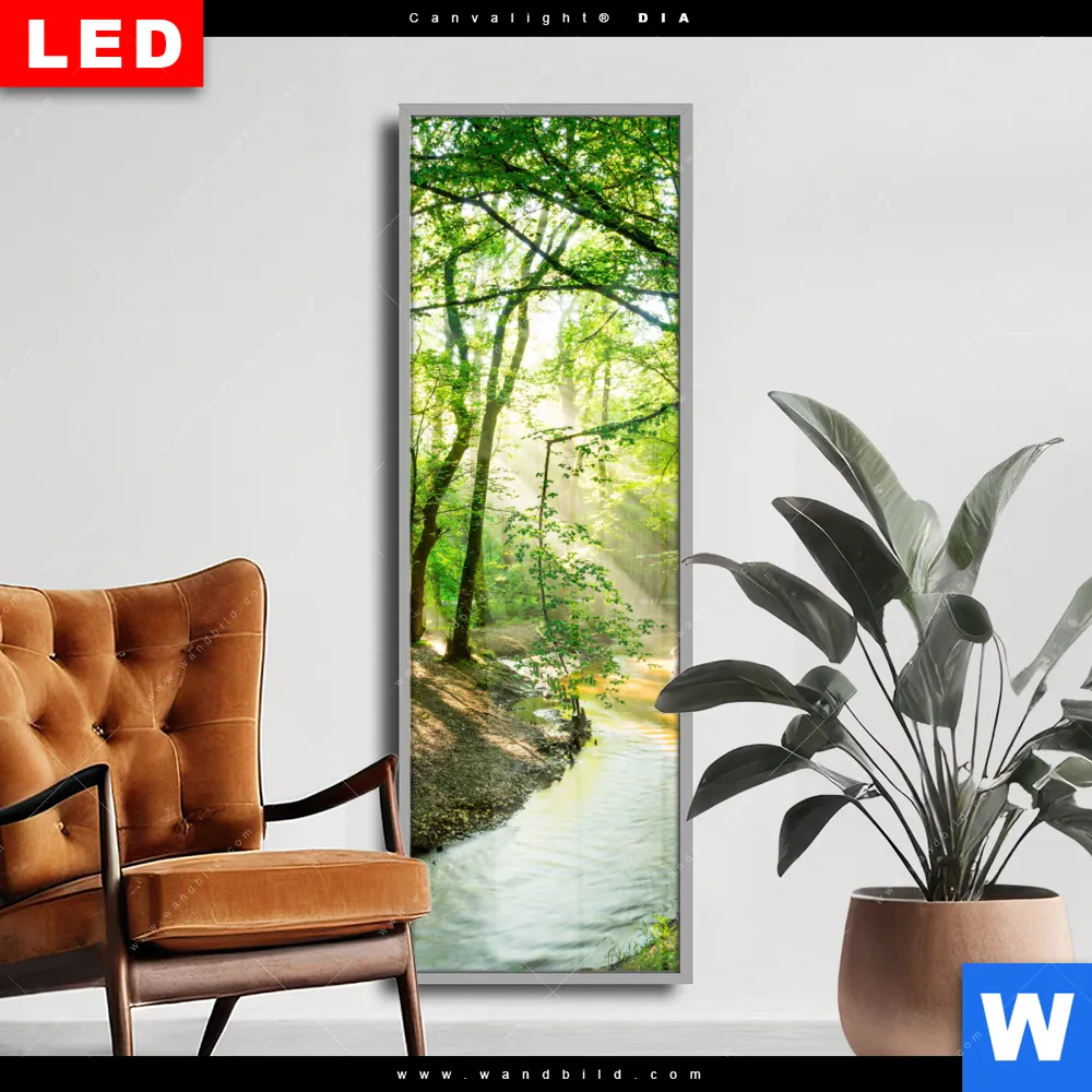 Wechselmotiv Acrylglas Canvalight® DIA | Wald mit Bach | Schmal