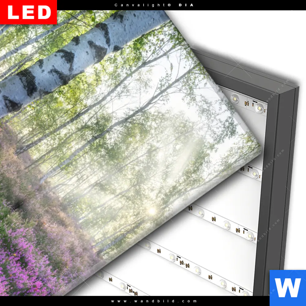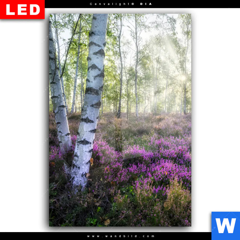 Wechselmotiv Acrylglas Canvalight® DIA | Wald mit Heideblumen | Hochformat